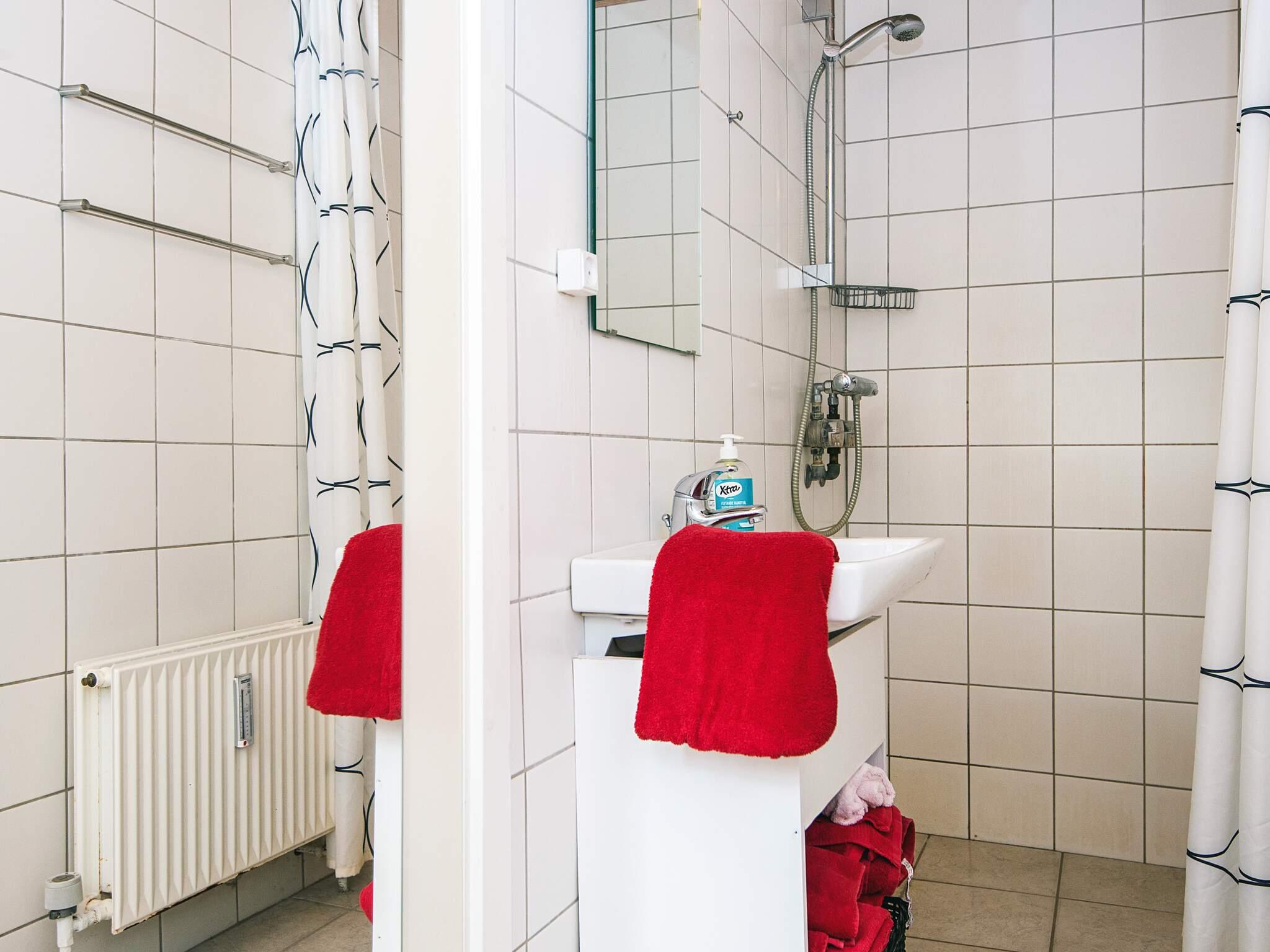 Køkken: El-komfur, køleskab m/frostboks, mikroovn, kaffemaskine, opvaskemask.