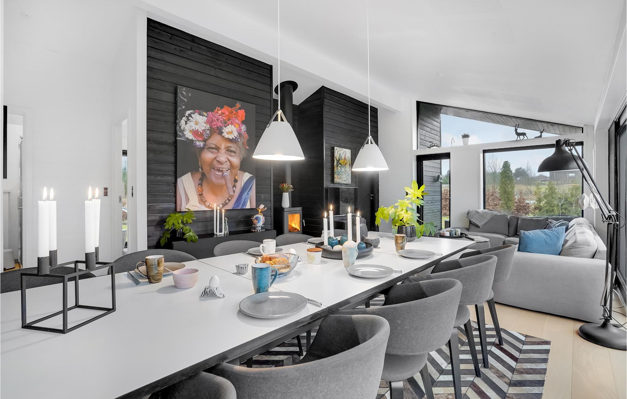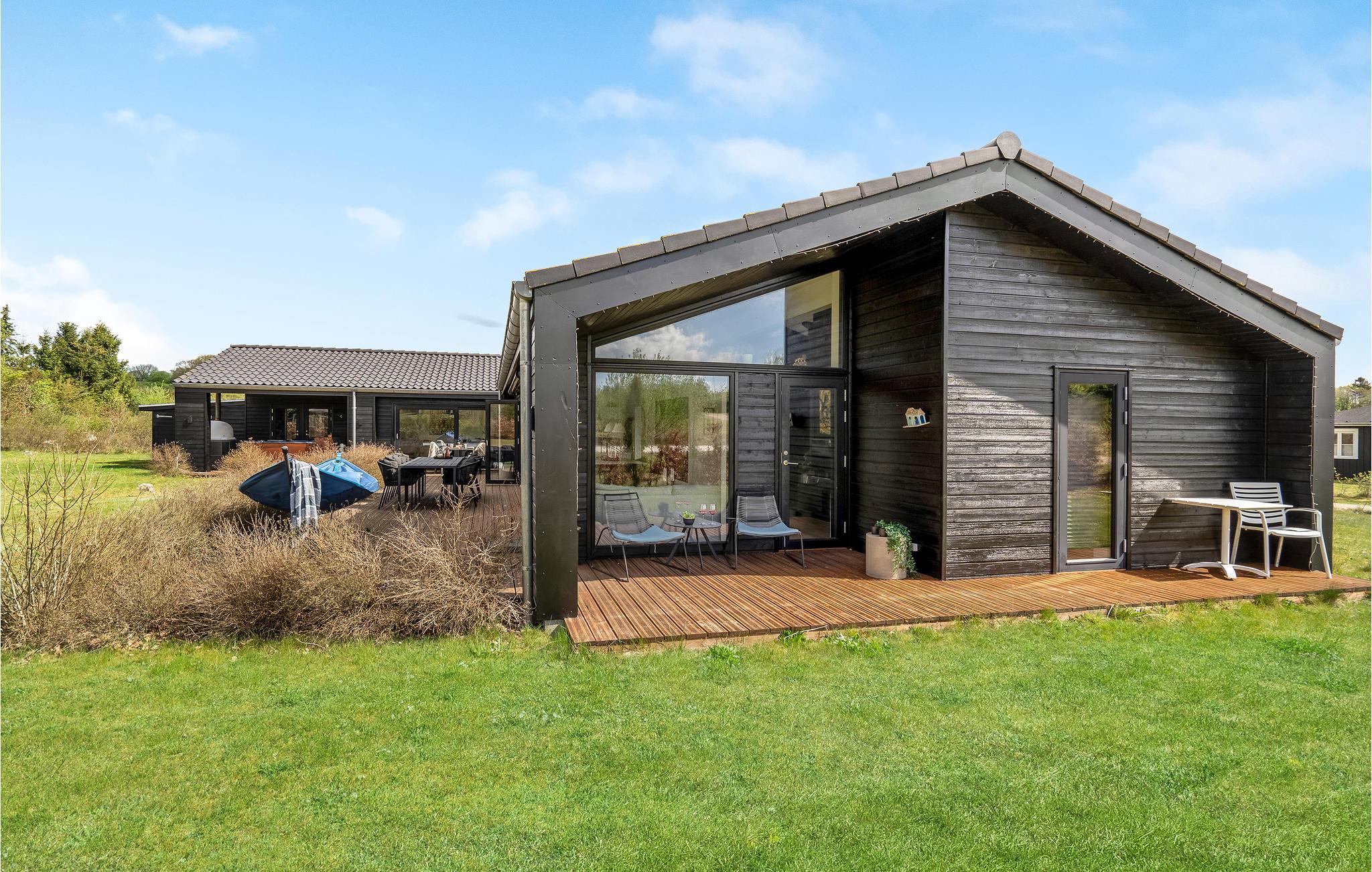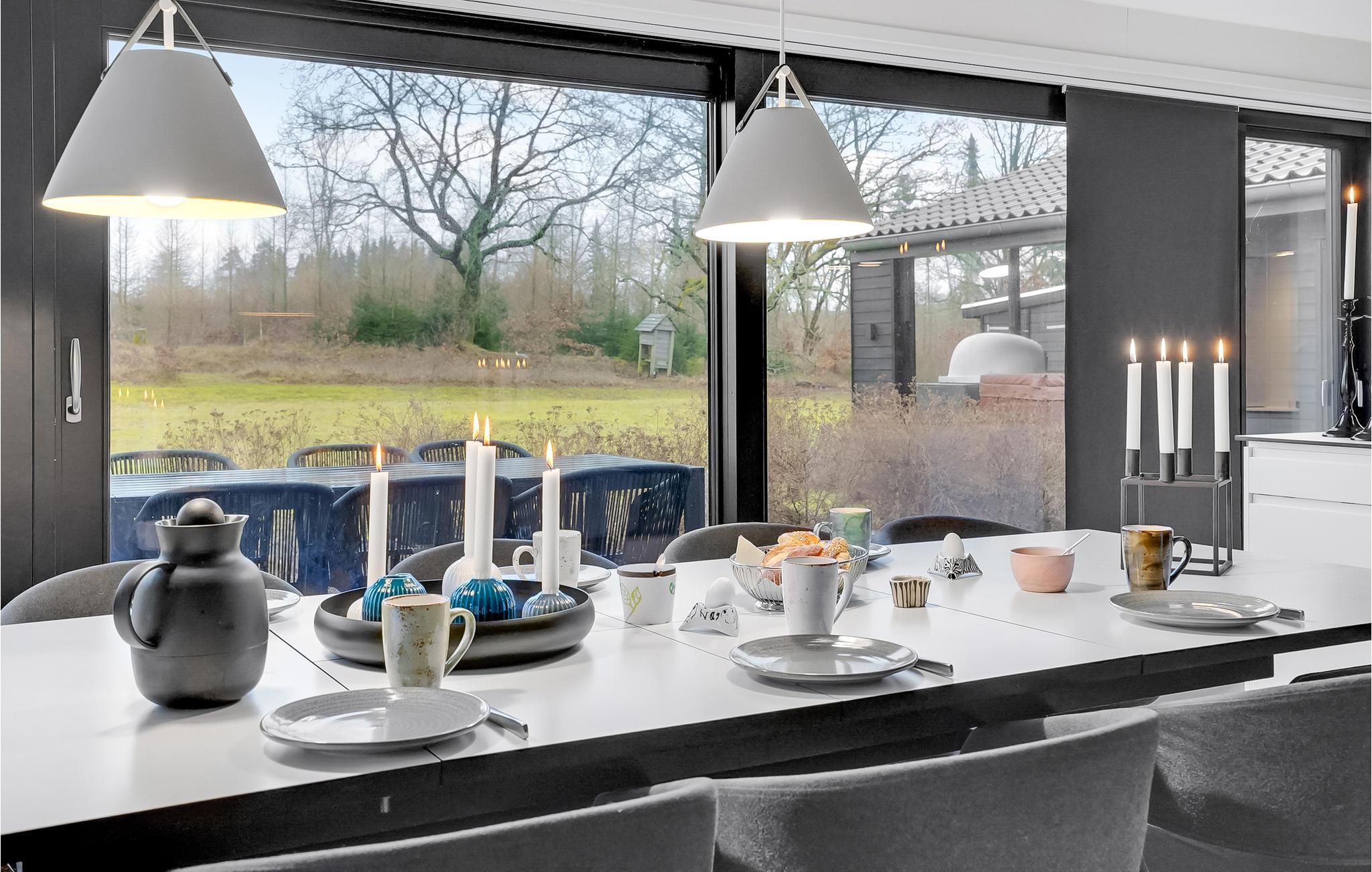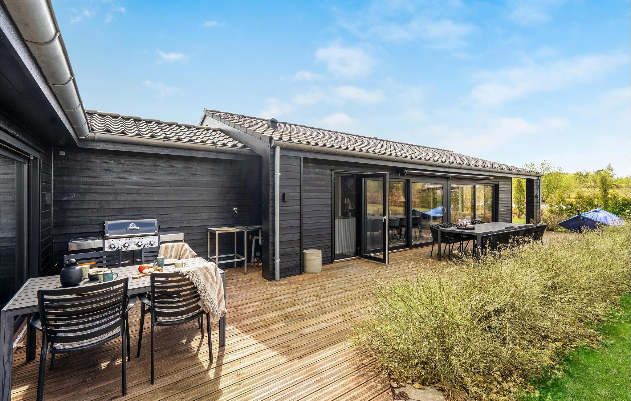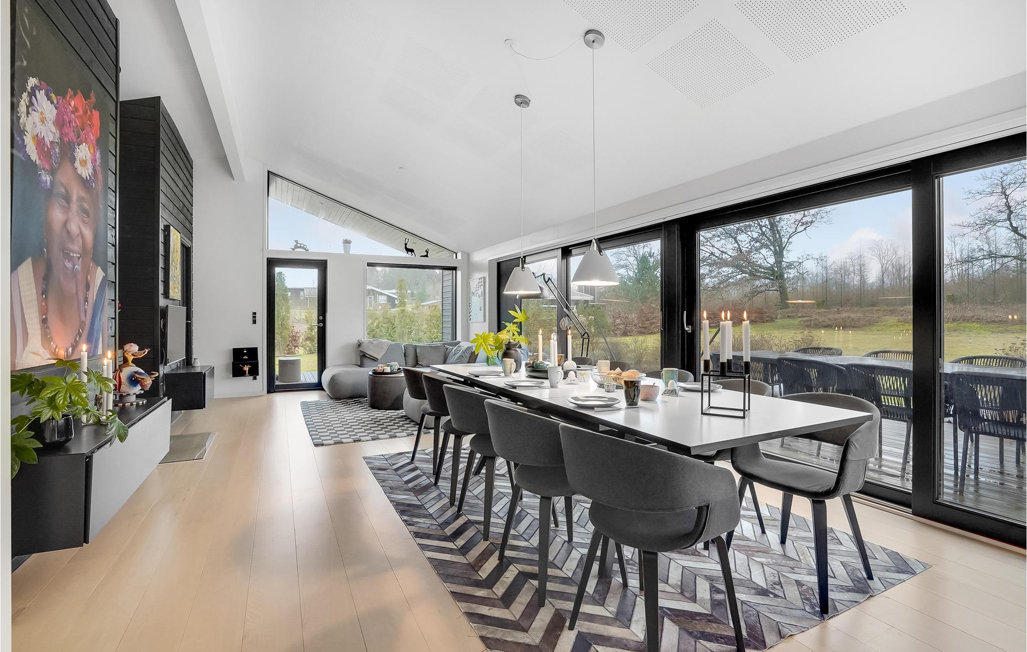 Luksuriøst feriehus med moderne indretning, udendørs spa, aktivitetsrum og store terrasser nær Rørbæk Sø.