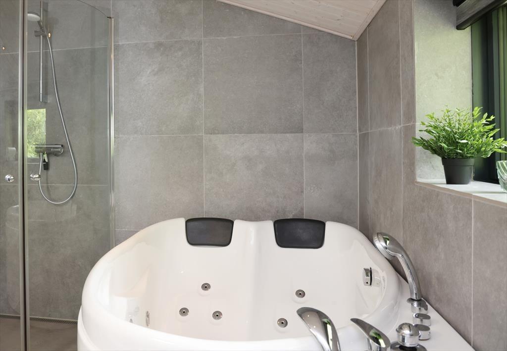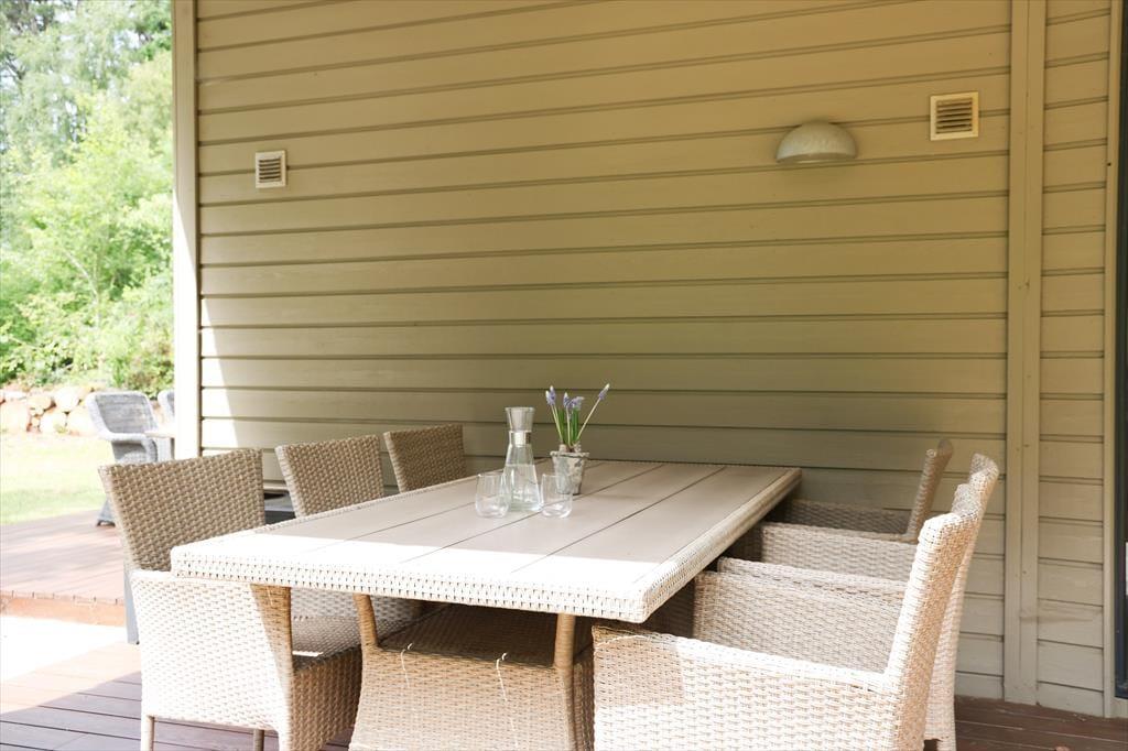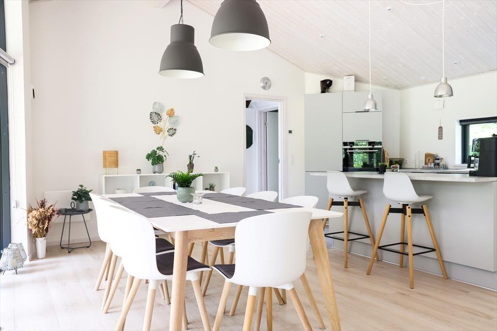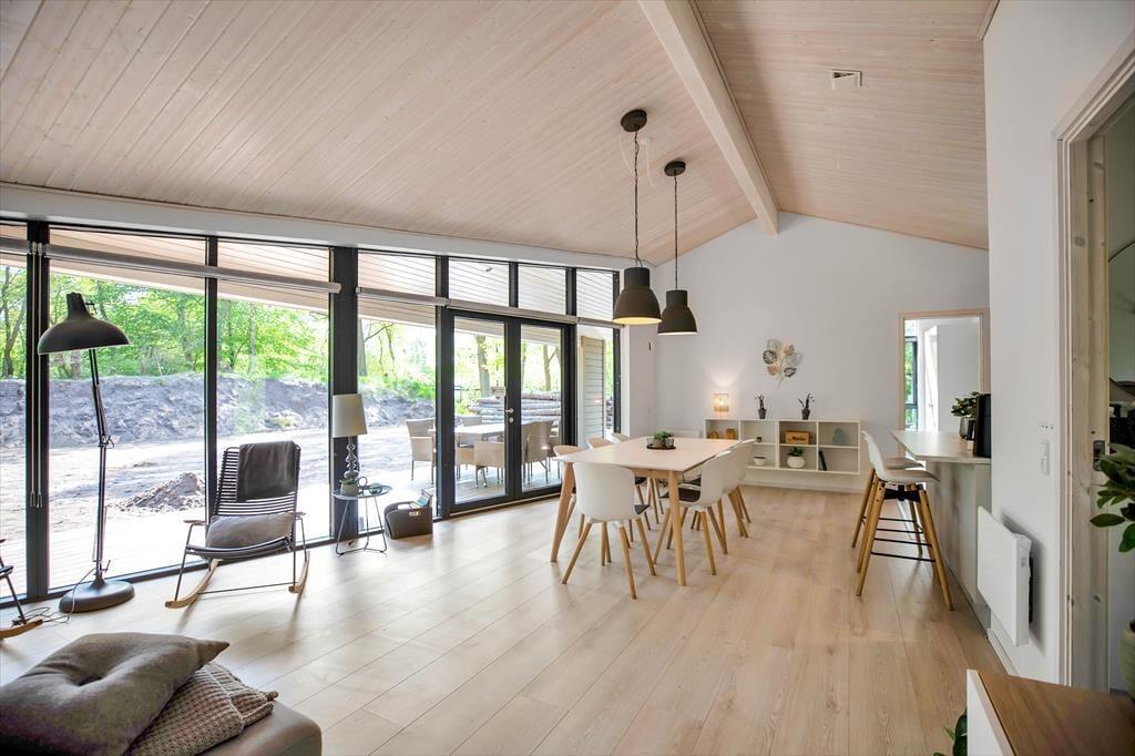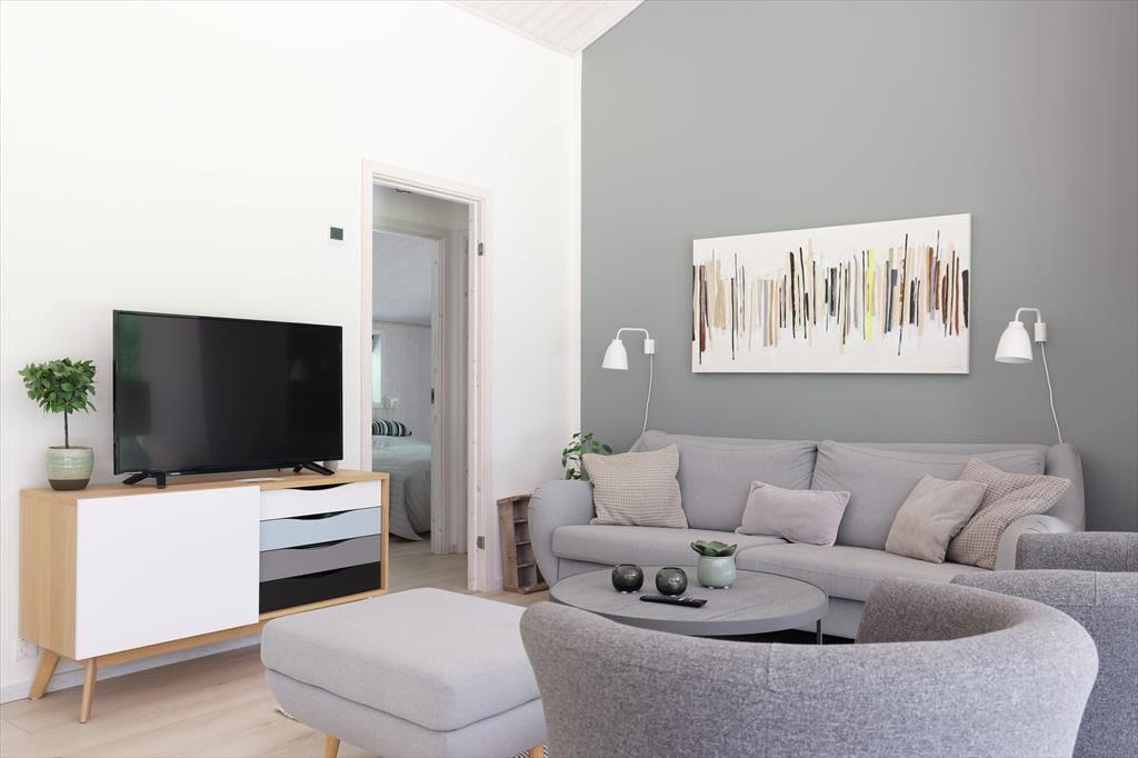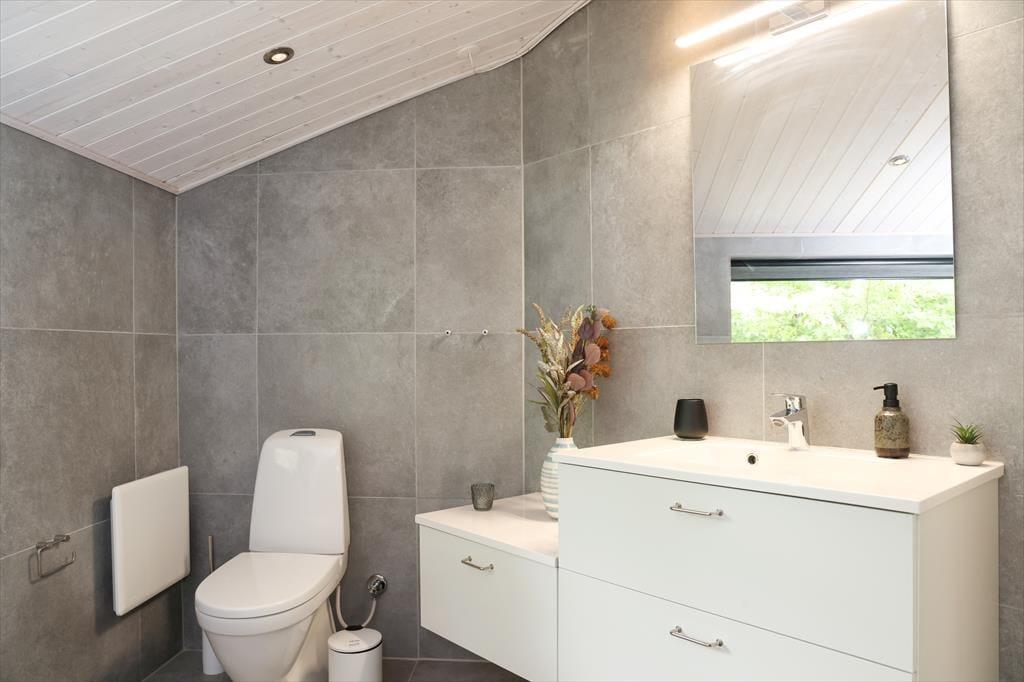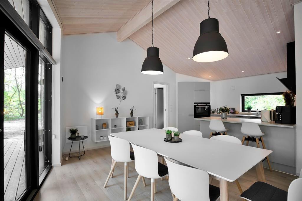 Sommerhuset er med gulvvarme i alle rum og indrettet således: Bryggers med vaskemaskine. 2 soveværelser med dobbelt senge og soveværelse med 2 enkeltsenge. Der tilhører også 2 lækre badeværelser, det ene med et dejligt spabad. Køkken/alrum i hvide elementer med alt i moderne udstyr, her kan man hjælpes om at tilberede en god frokost, køkkenet er i åben forbindelse med skøn stue, hvor du f.eks. kan slappe af med en latte. Fra stuen er der udgang til stor træterrasse der er opdelt i flere åbne og en overdækket afdeling, her kan I nyde solen fra morgen til aften samt komme et par gode bøffer på grillen. Haven er under etablering, græsset er på vej.
