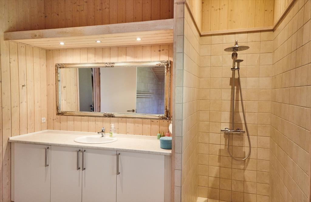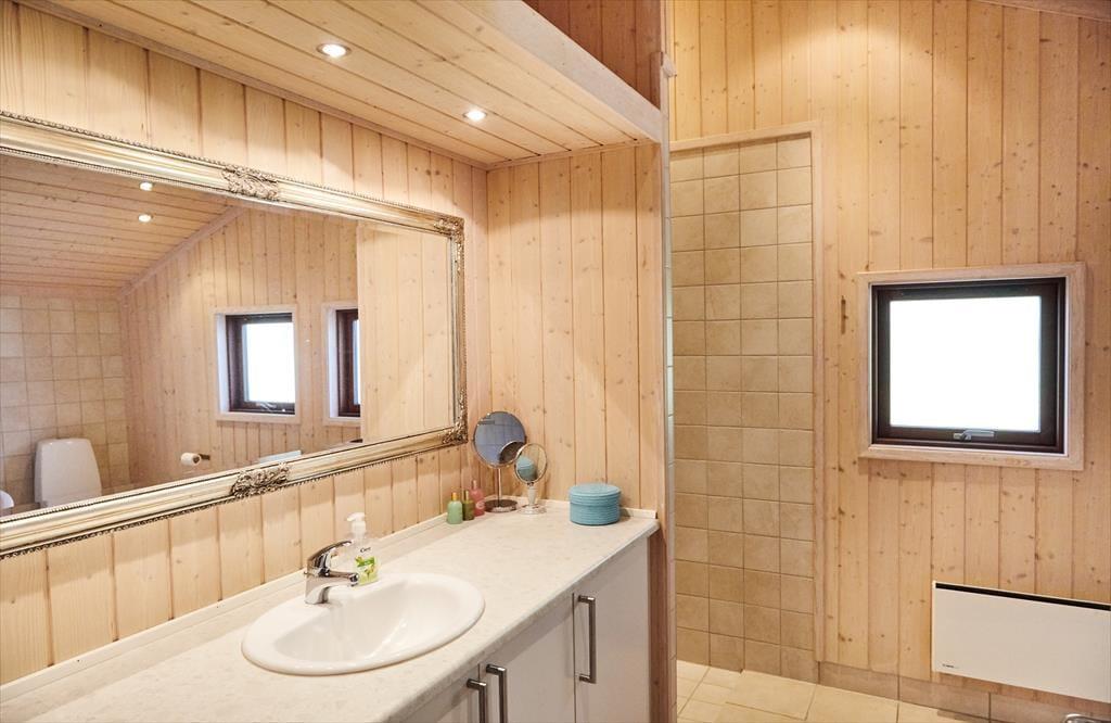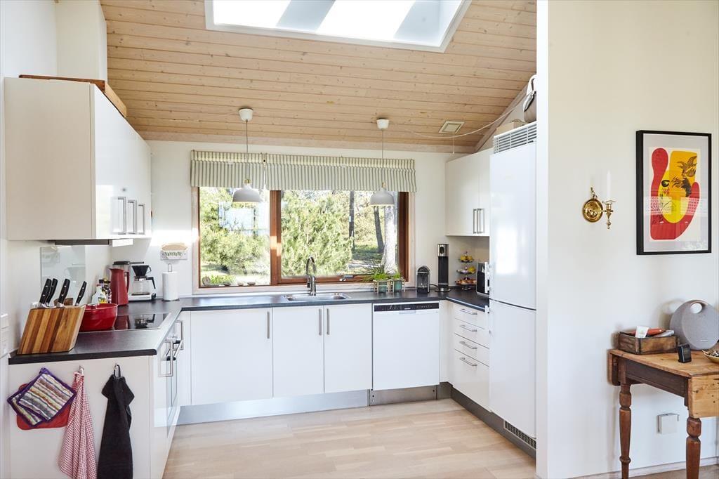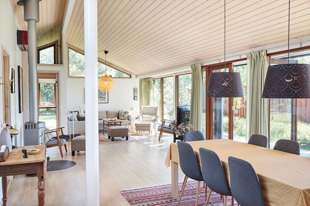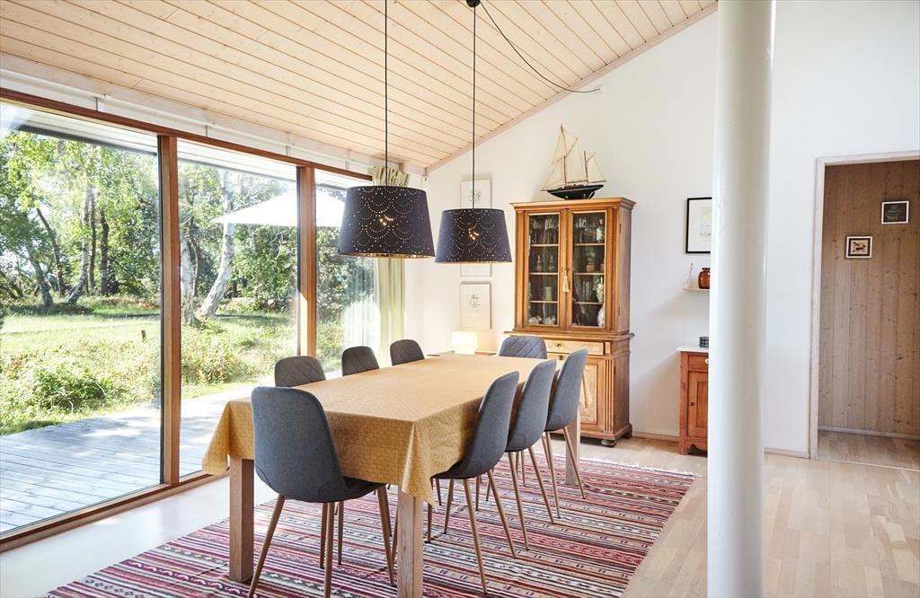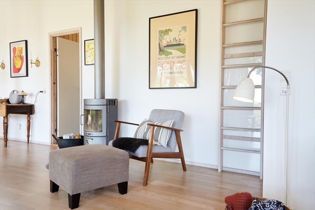 Når du træder ind i sommerhuset, vil du med det samme fornemme stemningen af god kvalitet, kombineret med den skønne afslappede atmosfære. Du vil hurtigt komme ned i gear og mærke at det endelig er ferietid. I har her plads til nærvær og afslapning med hinanden. Den skønne stue i forbindelse med det åbne køkken er rammen om hyggelige samtaler over frokosten eller fantastiske aftener i brændeovnens skær, med udsigt til havet. Hvis du vil forkæle din ven eller partner, så tænd et par stearinlys og åben en flaske bobler, mens du fylder vand i spabadet, så det er klar til brug.