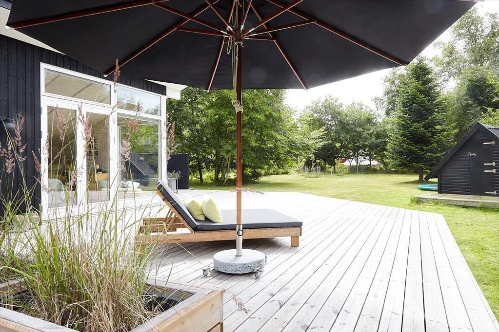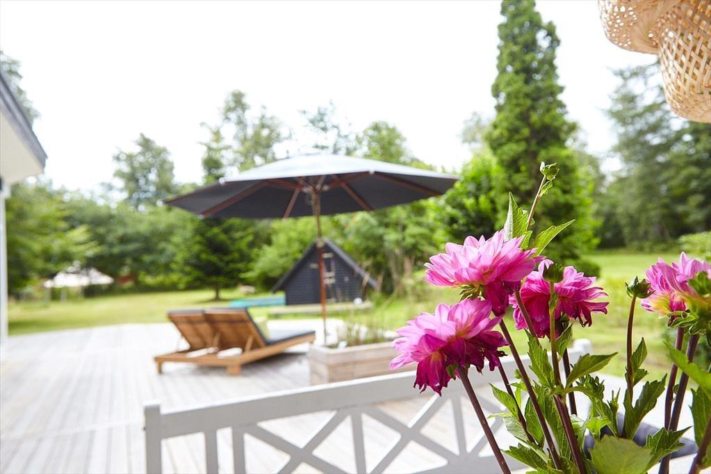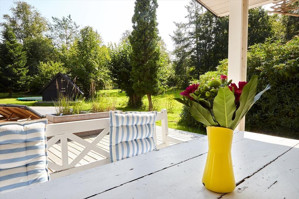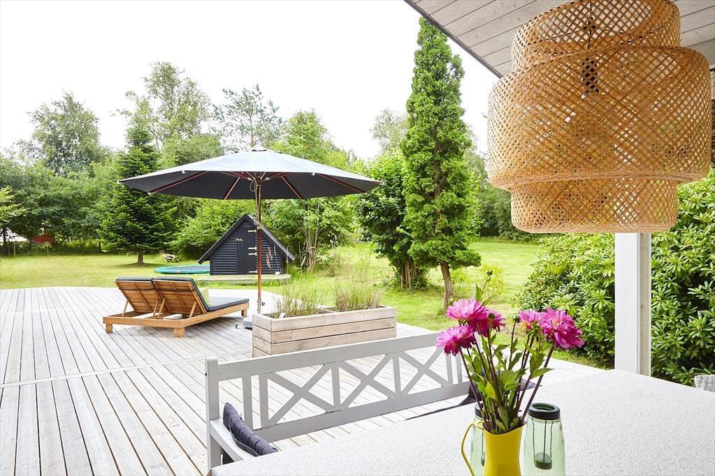 Husk at benytte husets helt ekstraordinære skønne terrasse, her er der mulighed for at nyde solen fra morgen til aften og betragte et rådyr der går forbi. Stor dejlig grund, med mulighed for både boldspil og leg.