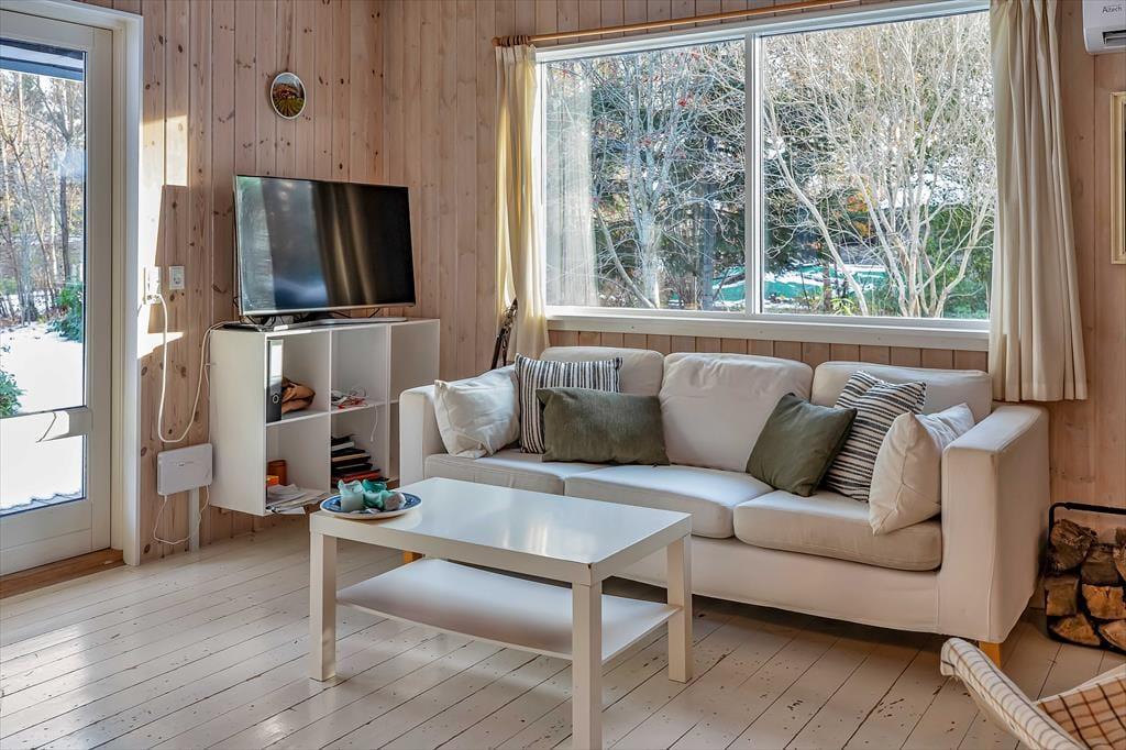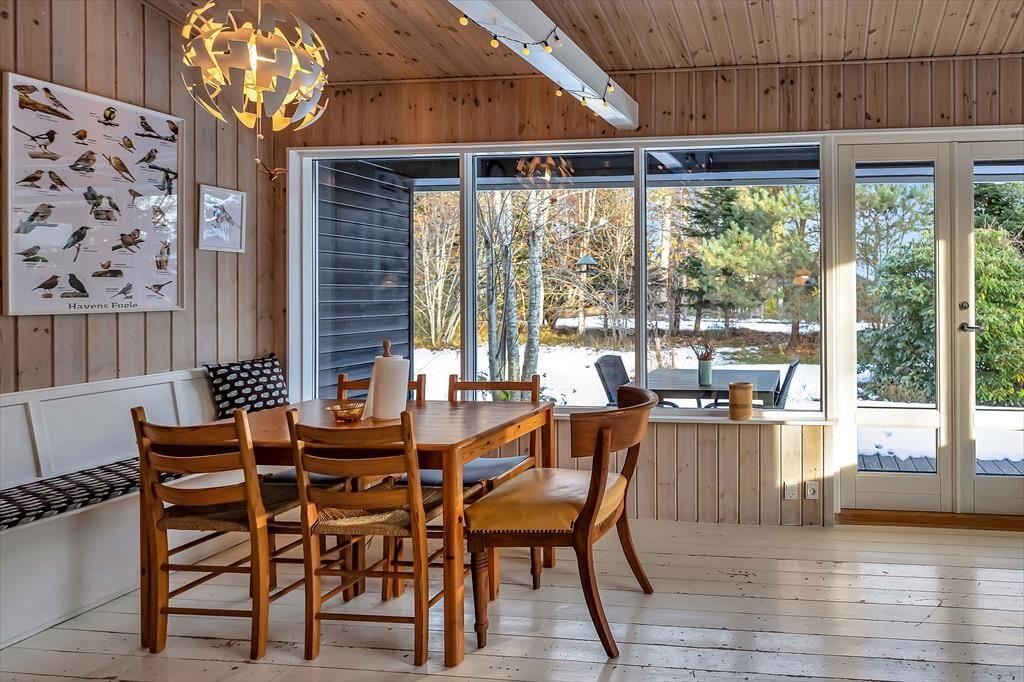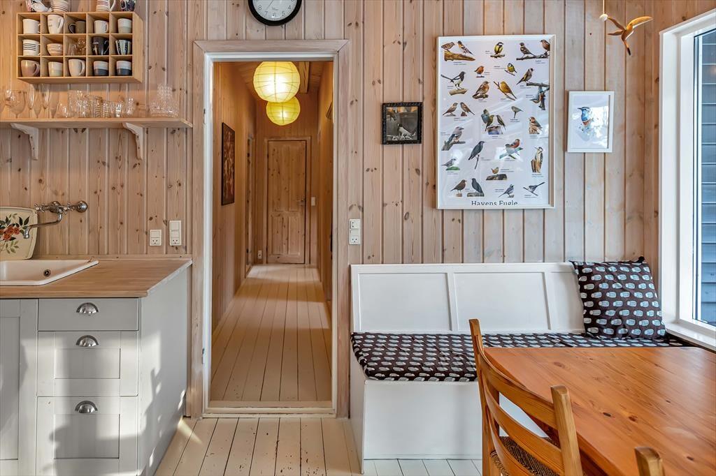 Indendørs fremstår sommerhuset lyst og meget hyggeligt. Der er tre gode soveværelser og tilhørende anneks. Husets hjerterum er den store stue, hvor der er åben forbindelse til køkkenet. Det er her alle kan samles om bordet og nyde en lækker brunch inden dagens aktiviteter og samles om aftenen til aftenhygge med brætspil og gode historier. I dette sommerhus er der mulighed for at flere generationer mødes, for sammen at holde ferie.