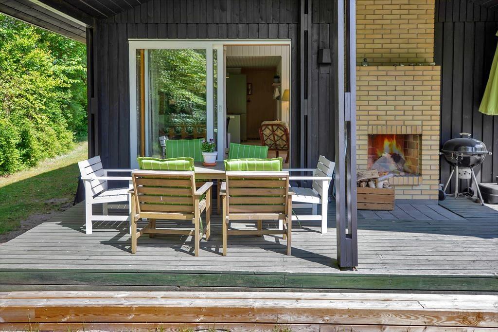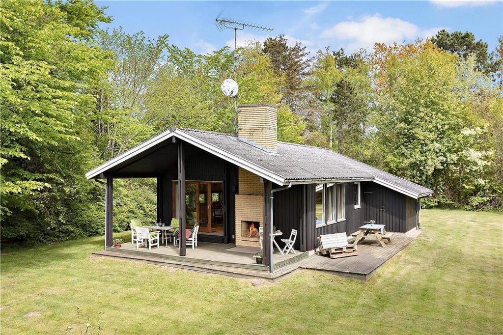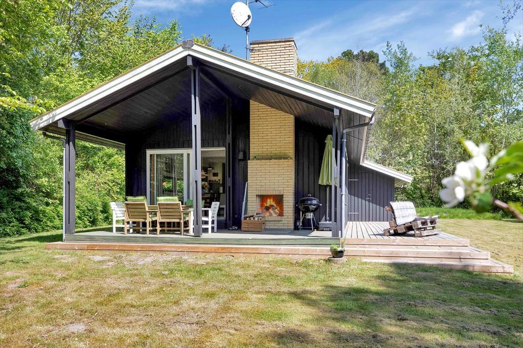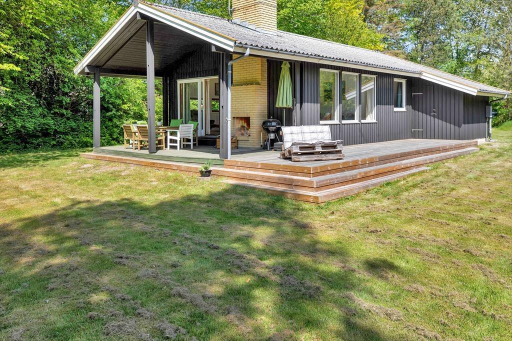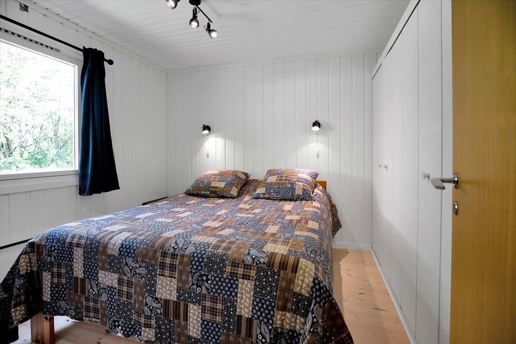 Huset indeholder hyggelig stue med sovesofa brændeovn samt spiseplads. Derudover er der åbent køkken og 2 soveværelser med henholdsvis dobbeltseng og køjeseng. Badeværelse med brus. Fra stuen er der udgang til den overdækkede terrasse med åben pejs hvor du kan nyde din grillede fisk og et glas koldt hvidvin samt udsigten til haven hvor rådyrene krydser jævnligt.