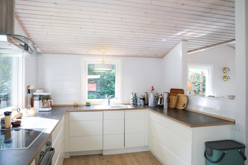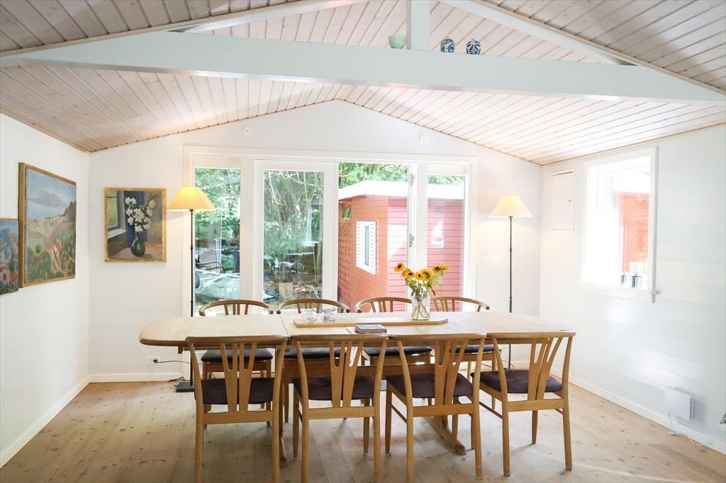 Indendørs fremstår sommerhuset lyst og særdeles hyggeligt. Der er tre gode soveværelser og tilhørende anneks. Husets hjerterum er den store stue, hvor der er åben forbindelse til køkkenet. Det er her alle kan samles om bordet og nyde en lækker brunch inden dagens aktiviteter og samles om aftenen til aftenhygge med brætspil og gode historier. I dette sommerhus er der mulighed for at flere generationer mødes, for sammen at holde ferie.
