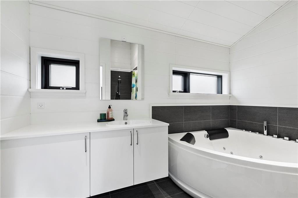 Skøn stue med god spiseafdeling og mulighed for både afslapning og hygge. I stuen kan du slappe af med en god bog eller nyde en latte. l det store dejlige køkken med alle moderne bekvemmeligheder, er der bl.a. mulighed for at tilberede en god frokost. Der er 2 lækre badeværelser, det ene med spabad, så her kan du blive forkælet med Wellness og hygge. Og så er her tre gode soveværelser, de to med dobbeltsenge, det tredje med dobbeltseng under og enkelt overkøje.