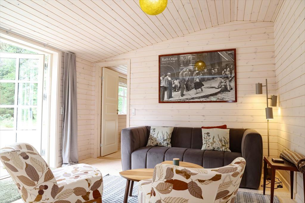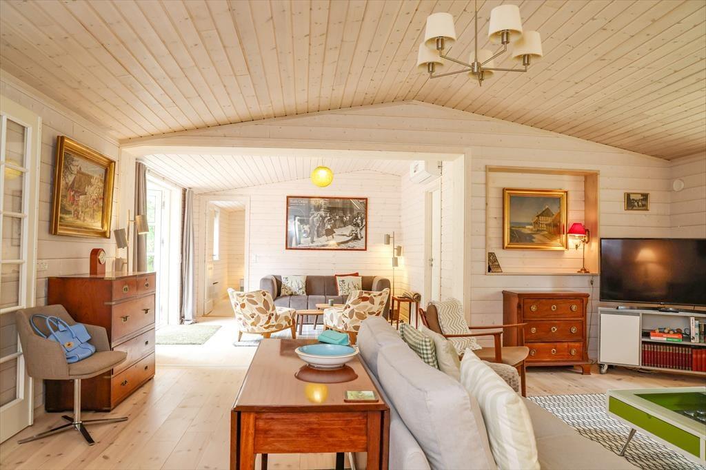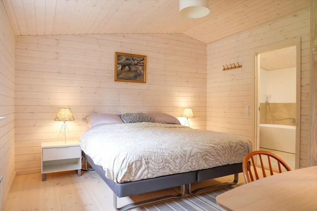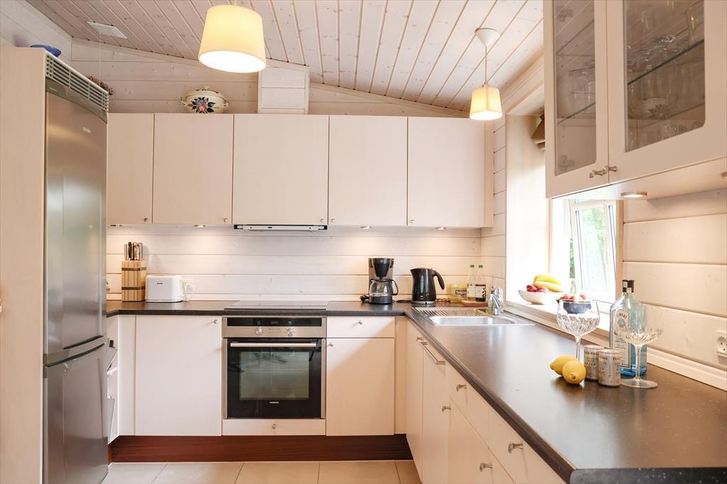 I centrum af huset er der et dejligt stort køkken-alrum med hyggelig spiseplads. I den ene ende af huset finder du 2 værelser og et badeværelse og i den anden ende ligger husets stue. I forbindelse med stuen er der et soveværelse med elevationssenge og husets andet badeværelse som har badekar – bemærk ingen brusekabine, men bruser i forbindelse med badekar. Der er internet og Apple tv- kun mulighed for at streame.