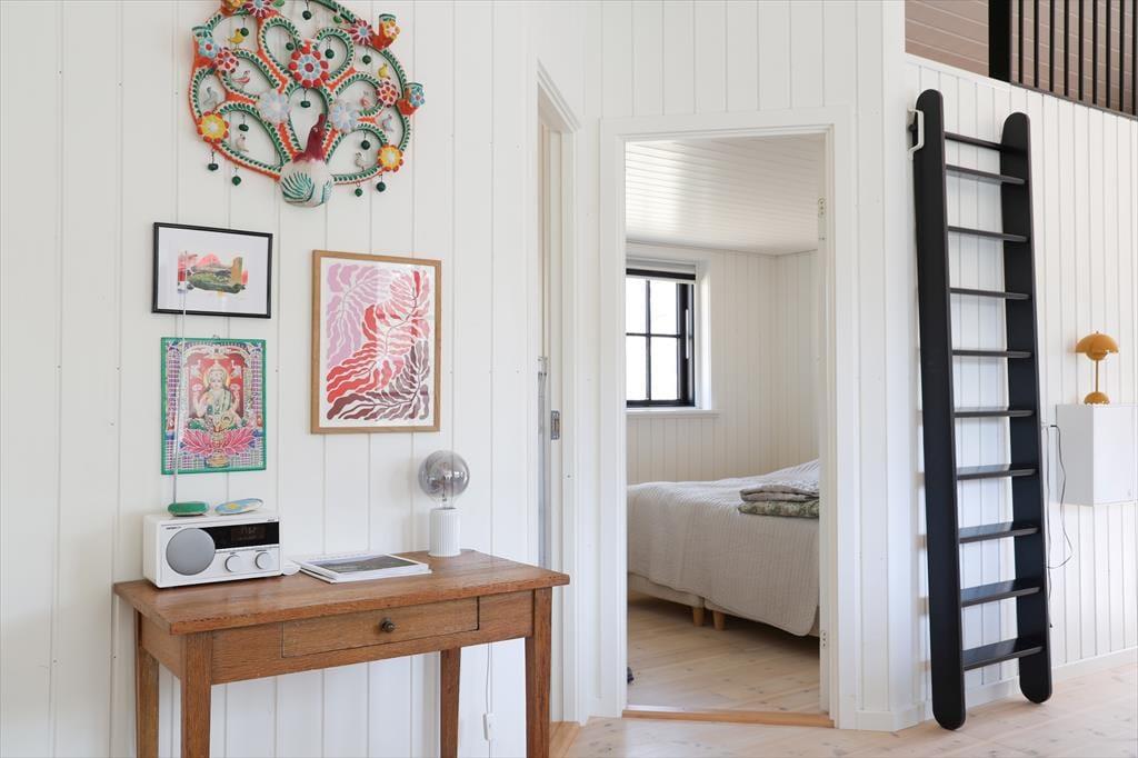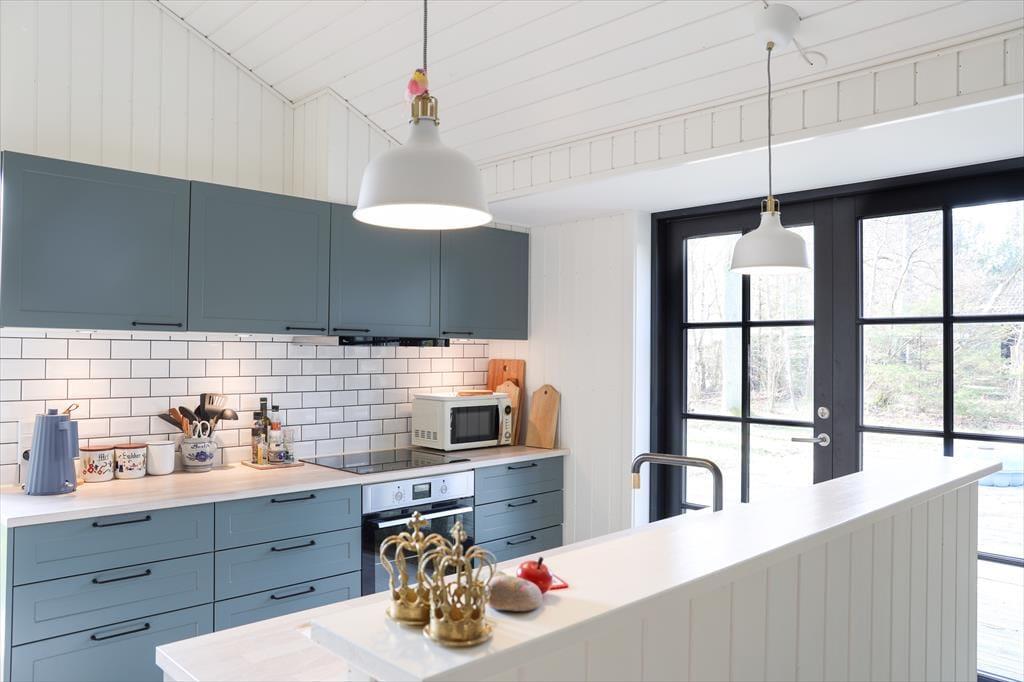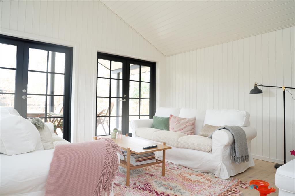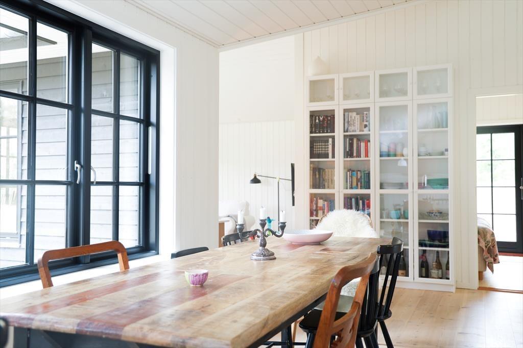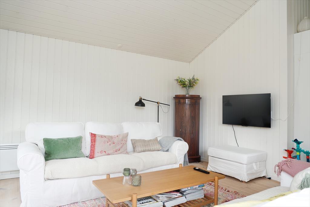 Indendørs får du kombinationen af hyggelig sommerhusstemning og en mere moderne indretning. Der er højt til loftet, og det giver en ekstra følelse af rummelighed og et godt lys. Hvis du elsker at lave mad, så er der god plads til hyggeligt samvær under madlavningen i køkkenet der er i åben forbindelse med spisepladsen. Her kan alle samles om det gode måltid eller hyggeligt samvær med spil og et godt glas vin.