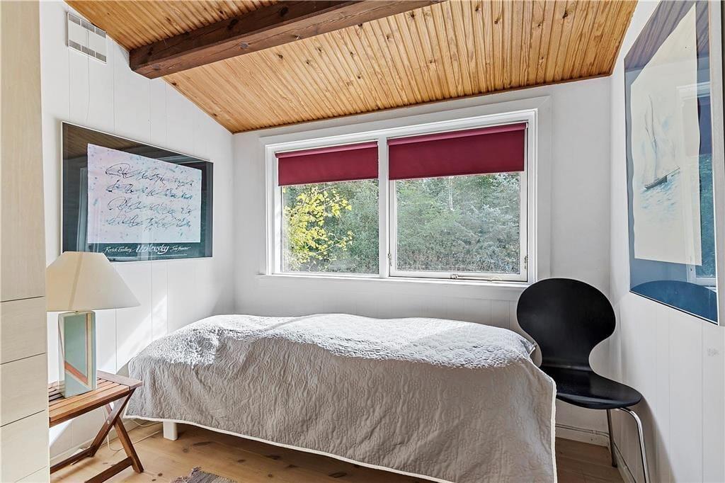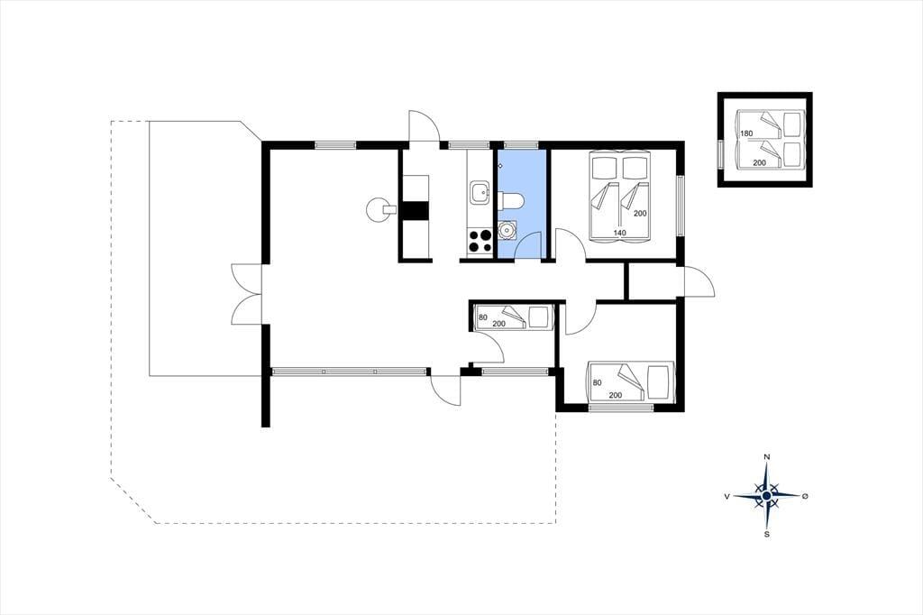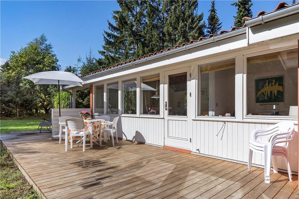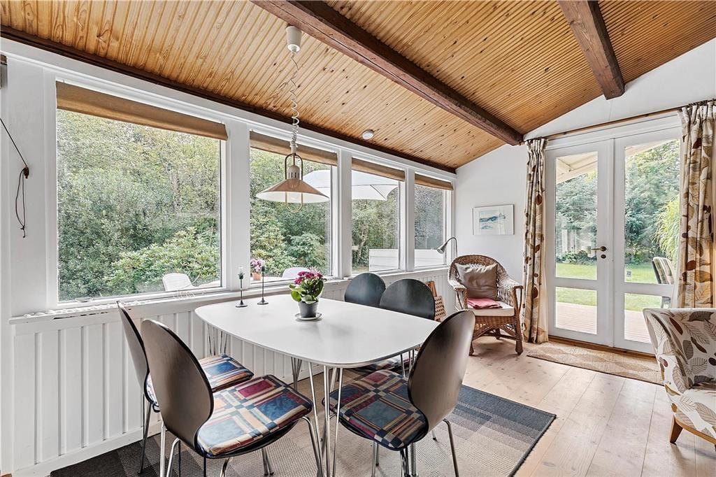 Huset indeholder dejlig opholdsstue med brændeovn, hvorfra der er udgang til en overdækket vestvendt terrasse samt adgang til den sydvendte solterrasse. Køkken med diverse hvidevarer og udgang til den hyggelige baghave. Flot badeværelse med gulvvarme, bruseniche og væghængt toilet. Tre dejlige værelser (et uden dør), det ene med dobbeltseng, de to andre med enkeltsenge. I det tilhørende anneks er der et velisoleret værelse med dobbeltseng. Ugenert grund, her vil dine børn elske at lege mens du nyder solen.