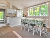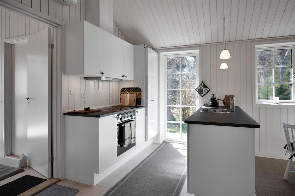 Sommerhuset er indrettet med dejligt åbent køkken. Stuen er både flot meget lys og rummelig med loft til kip, perfekt til hyggelige stunder. Der er et fint badeværelse med brus samt tre skønne soveværelser.