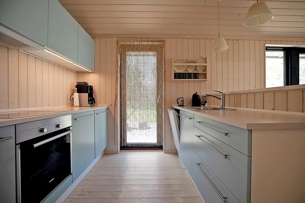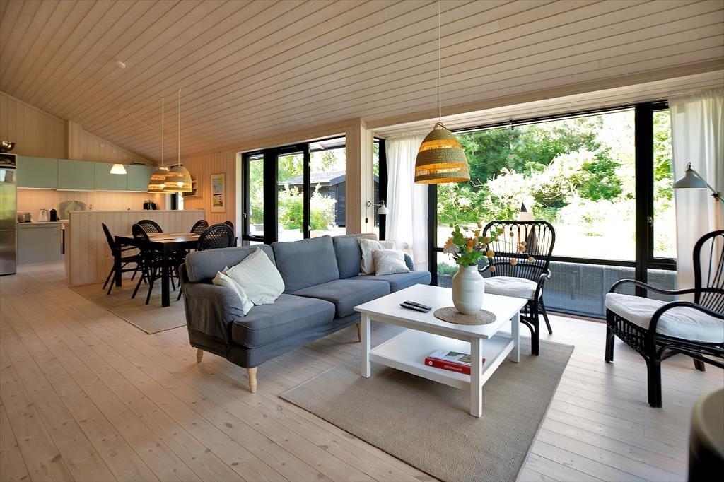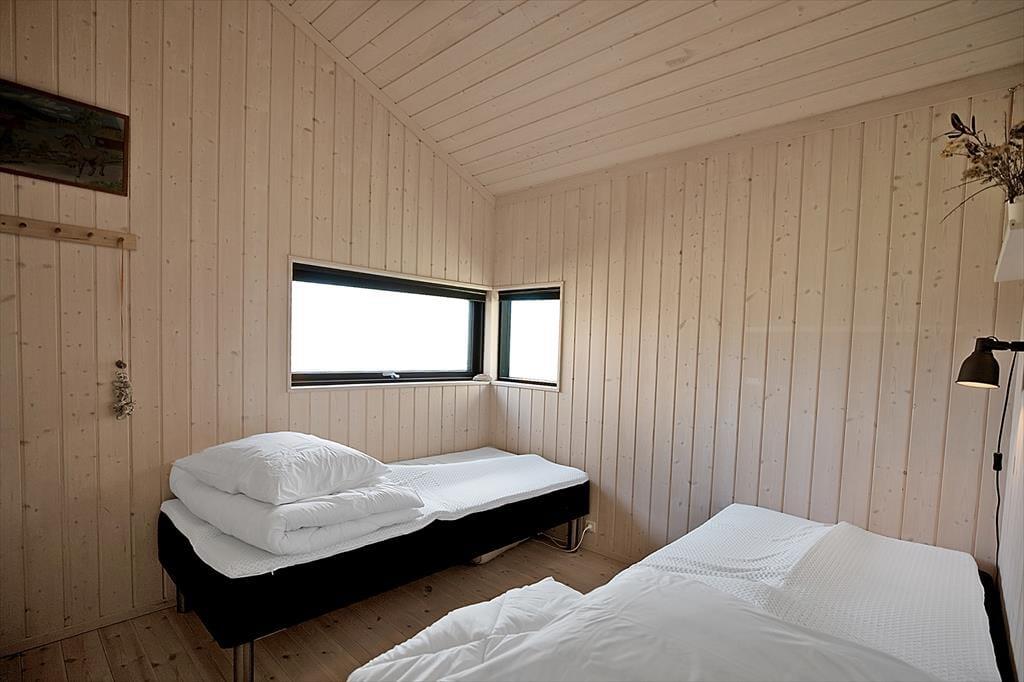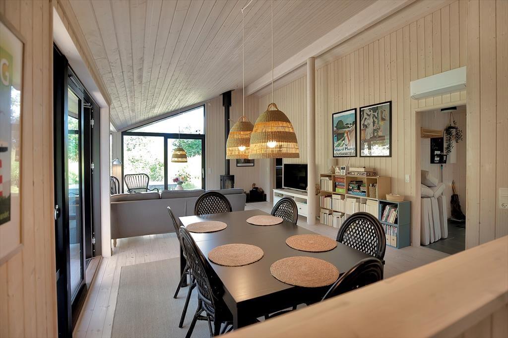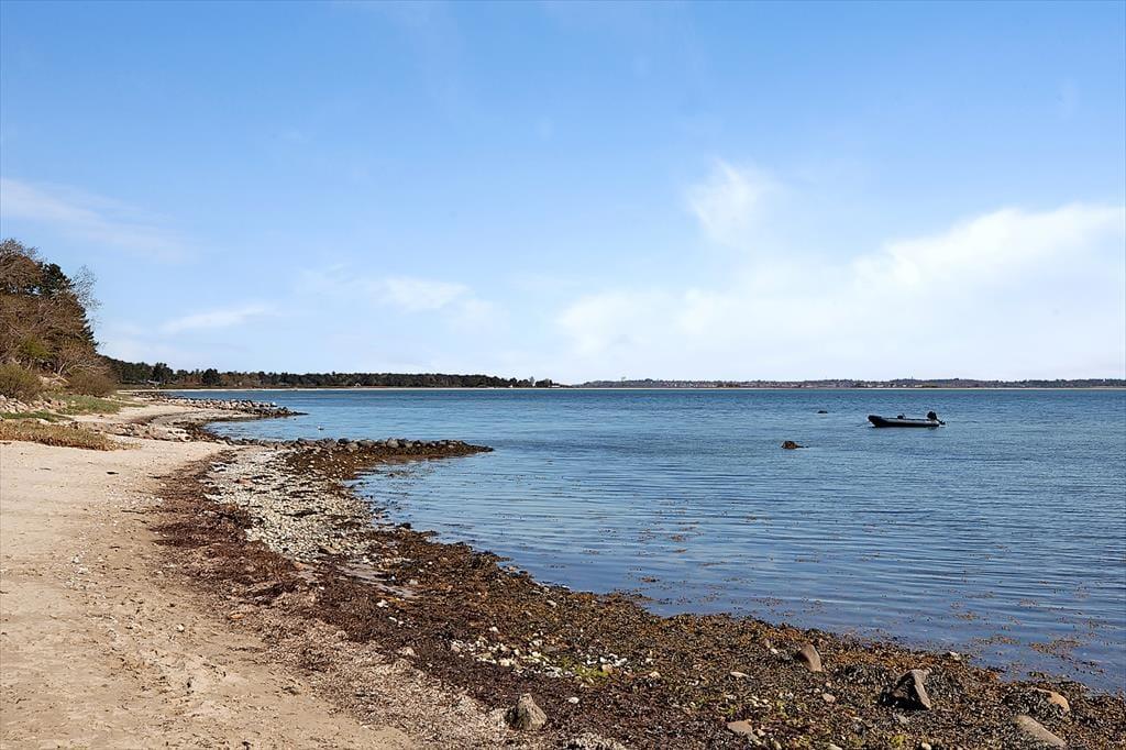 Sommerhuset er beliggende på en skøn placering kun 150 meter fra vandet. Huset er indrettet med åbent køkken med kombineret spise- og dagligstue. I huset er der 3 værelser - de to med to enkeltsenge og det tredje med dobbeltseng. Her er et stort badeværelse, samt et gæstetoilet. Huset har en stor, åben terrasse, plus en overdækket spisekrog. Huset er omgivet af en dejlig naturgrund, hvorfra I kan se fjorden.