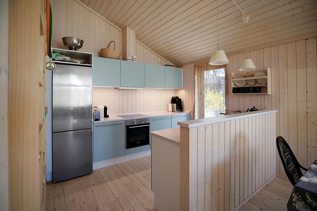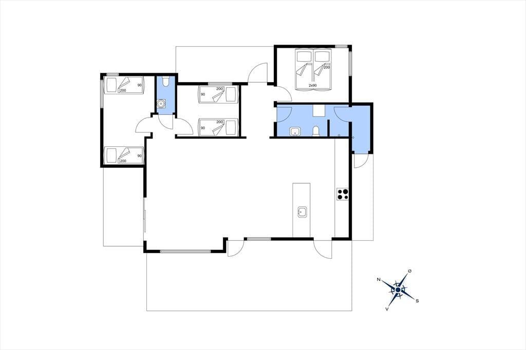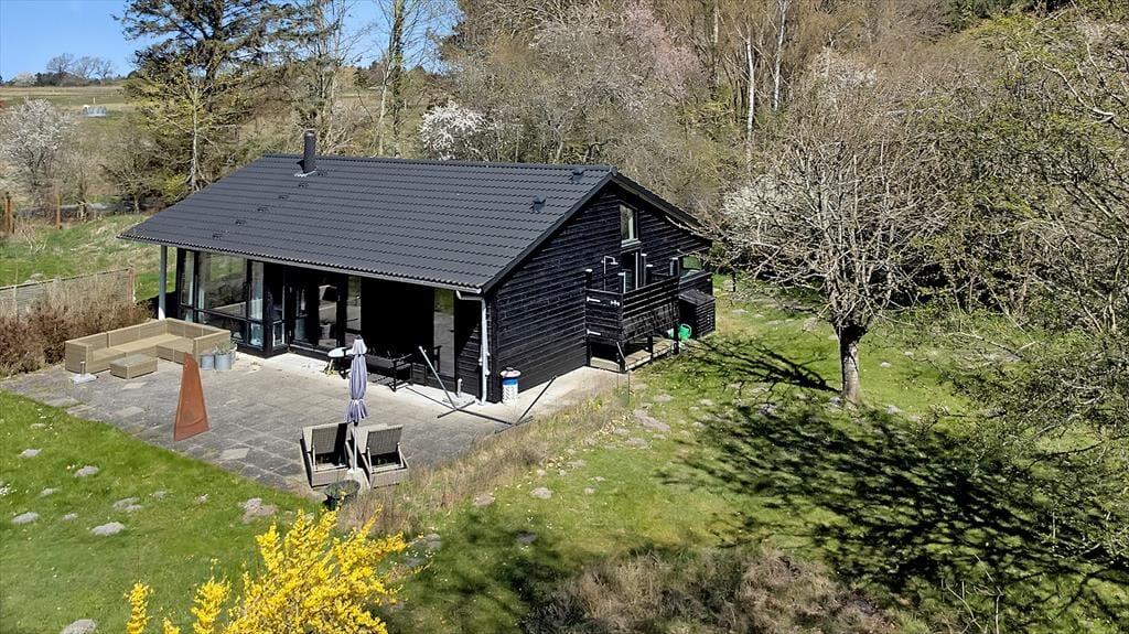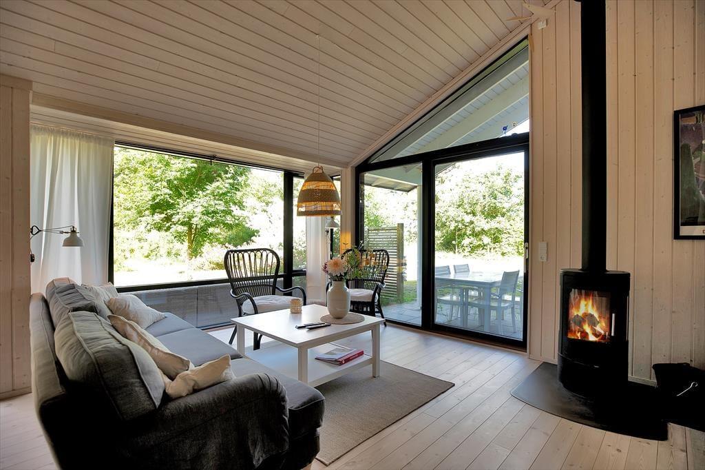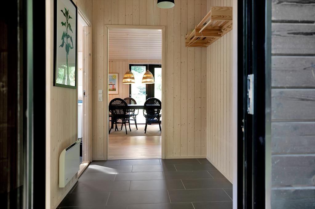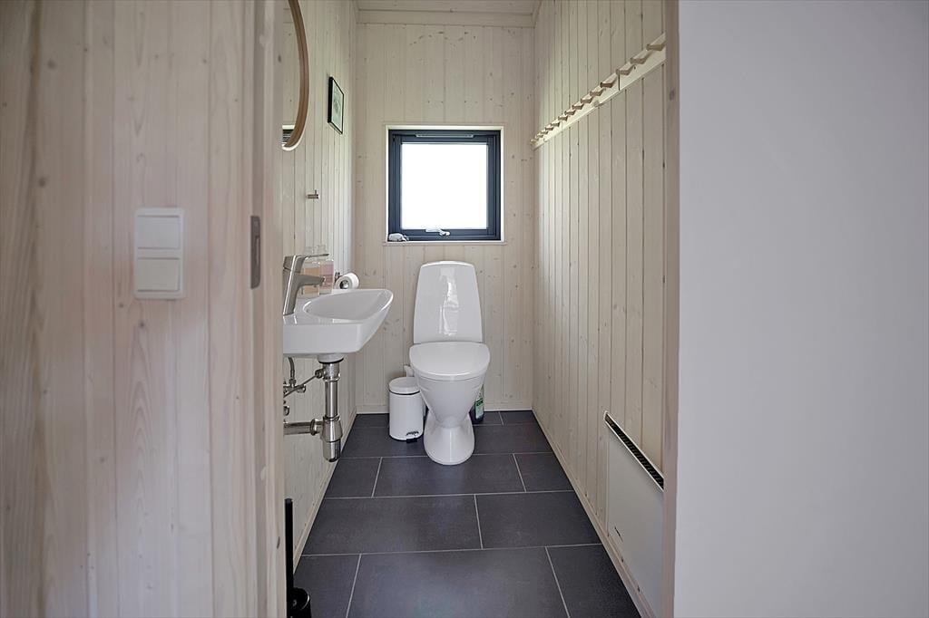 Sommerhuset er beliggende på en skøn placering kun 150 meter fra vandet. Huset er indrettet med åbent køkken med kombineret spise- og dagligstue. I huset er der 3 værelser - de to med to enkeltsenge og det tredje med dobbeltseng. Her er et stort badeværelse, samt et gæstetoilet. Huset har en stor, åben terrasse, plus en overdækket spisekrog. Huset er omgivet af en dejlig naturgrund, hvorfra I kan se fjorden.