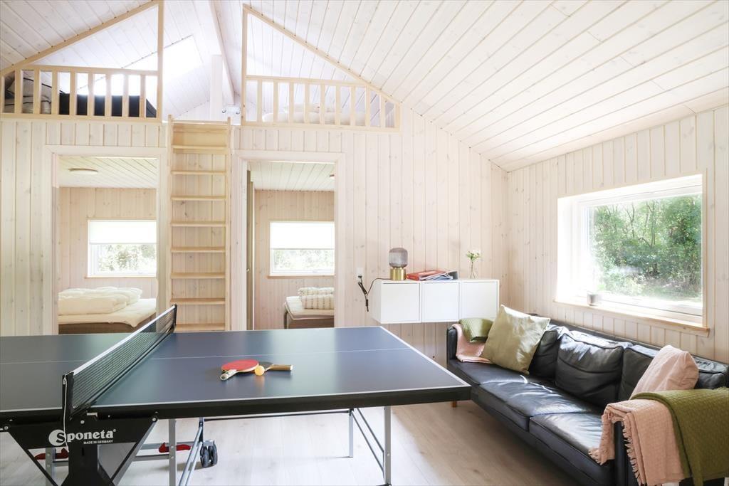 Huset indeholder en rigtig lækker stue, hvor du både kan fordybe dig i en god bog eller nyde en latte. Der er mulighed for streaming via huset hurtige internet. I forbindelse med stuen er der et skønt køkken, med alt i moderne udstyr. Der er 4 dejlige soveværelser med god skabsplads og en stor hems til rådighed og så skal vi naturligvis ikke glemme de to dejlige badeværelser, i det ene er der både et lækkert spabad og sauna til din rådighed. I aktivitetsrummet kan I både spille bordtennis og bordfodbold. Fra stuen er der udgang til en stor og dejlig terrasse, opdelt i flere afdelinger, så her er alle muligheder for at nyde solen fra morgen til aften. Haven og terrassen er under færdiggørelse. Alt i huset fremstår nyt, lyst og særdeles indbydende, der er anvendt de bedste materialer til det hele og huset opvarmes via luft til vand. Ungdomsgrupper er ikke velkomne.