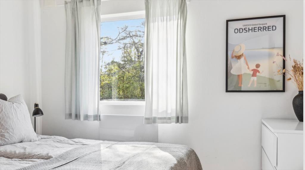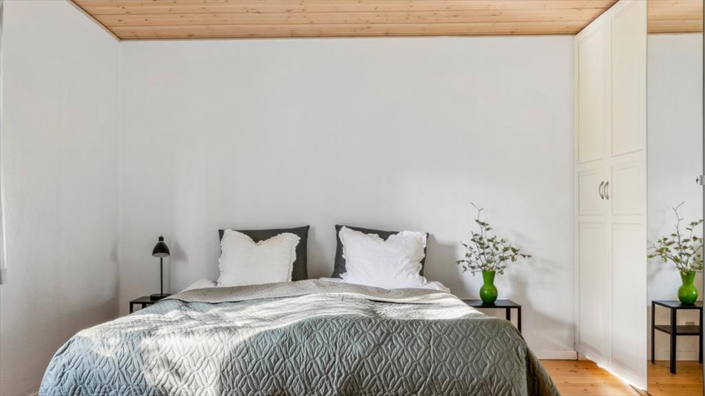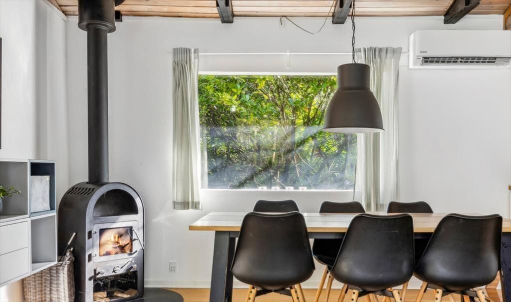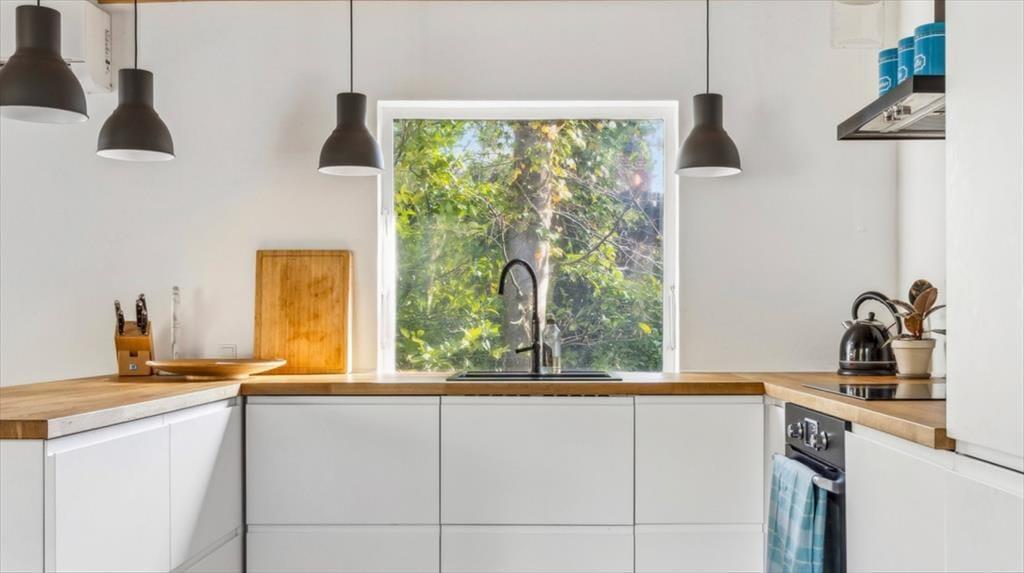 Huset er renoveret i 2020 – nu med stor åben med loft til kip, åbent køkken, 3 værelser, to toiletter og et badeværelse, stort åbent alrum med smukke fritlagte bjælker. Samlingspunktet er den store stue med ny brændeovn, karnap og dobbelte terrassedøre – ud mod sydvest‑terrassen – der skaber en varm og indbydende atmosfære. Køkkenet har moderne hvidevarer og god bordplads med plads til at flere kan lave mad samtidig. Perfekt som ramme om fælles madlavning og hyggelige stunder.