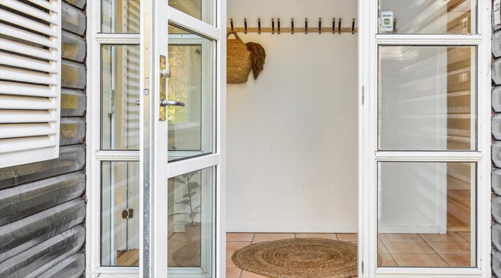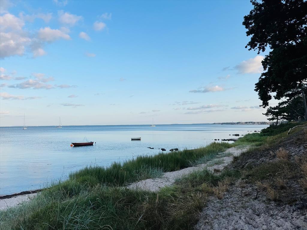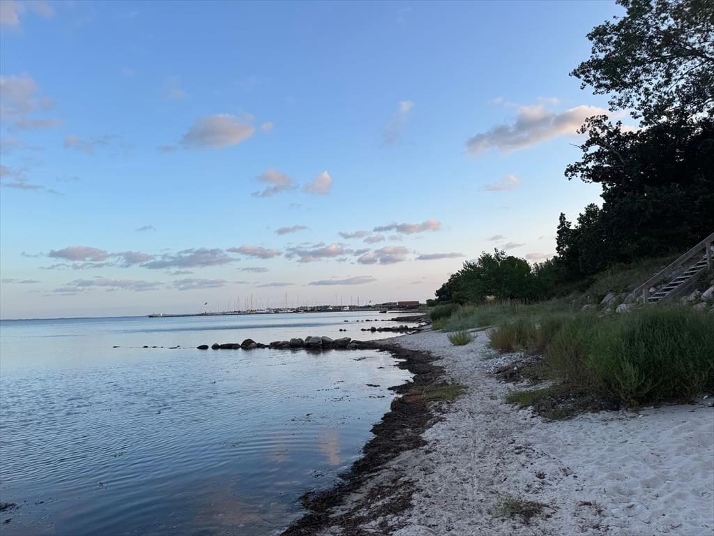 Sommerhuset er smukt placeret på en 1.528 m² stor, fredfyldt grund med høje træer som danner et roligt, grønt læhegn omkring området. Fra haven fører en privat sti direkte til vandet, og I kan nå stranden til fods på under 2 minutter (200 meter) – ideelt til badning, krabbefangst og vandsjov.