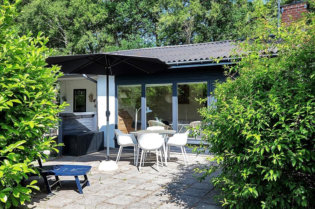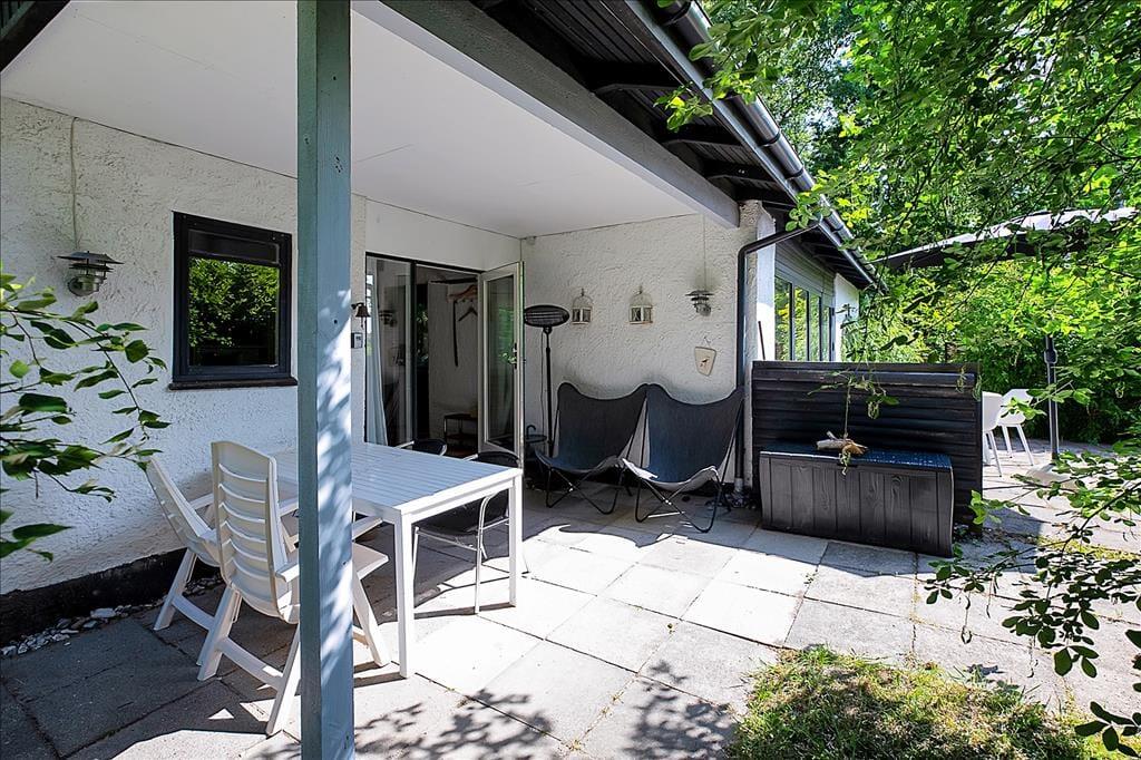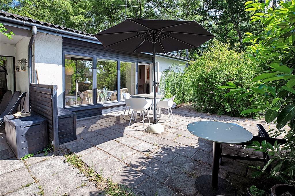 På den skønne terrasse, der er opdelt i en overdækket og en åben afdeling, kan du nyde solen fra morgen til aften.