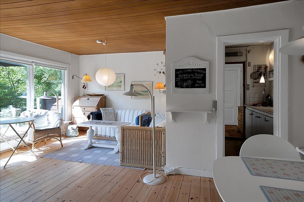 Dejlig stue hvor I kan slappe af med et slag kort eller nyde et glas vin, mindre åbent køkken og to hyggelige sove værelser. I det tilhørende bryggers er der også opvaskemaskine. Samt badeværelse med brus.