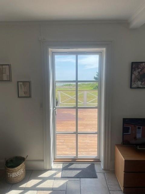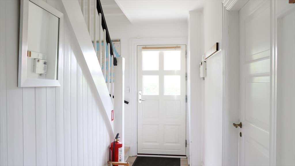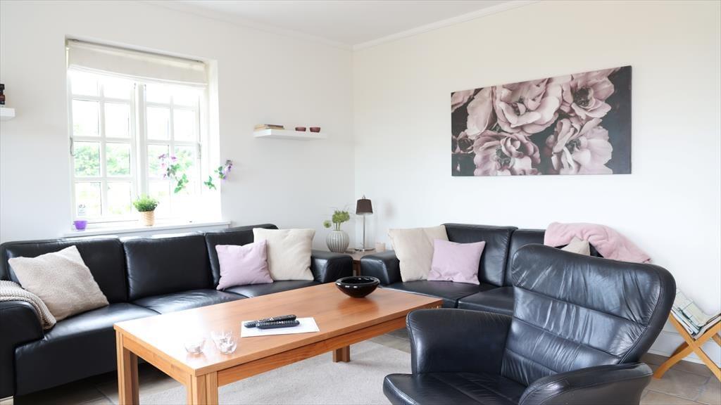 Når du træder ind i sommerhuset, vil du med det samme fornemme stemningen af god kvalitet, kombineret med den skønne afslappede atmosfære. Du vil hurtigt komme ned i gear og mærke at det endelig er ferietid. I har her plads til nærvær og afslapning med hinanden. Den skønne stue er rammen om hyggelige samtaler over frokosten eller fantastiske aftener med udsigt til vandet. Hvis du vil forkæle din ven eller partner, så tænd et par stearinlys og åben en flaske bobler efter at børnene er puttet.