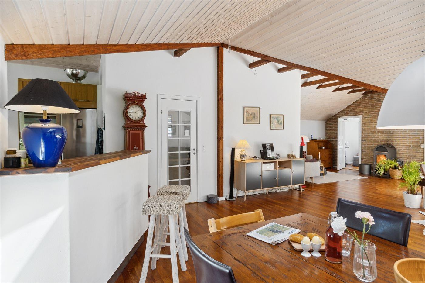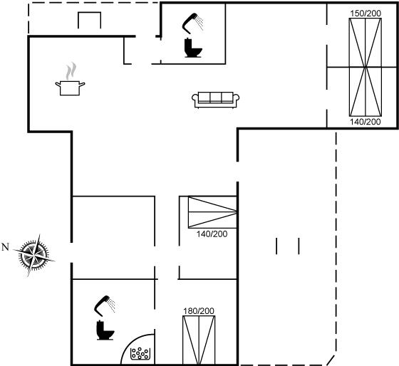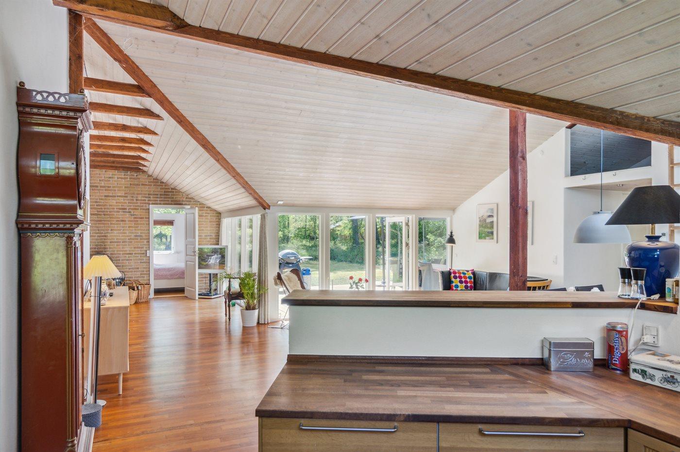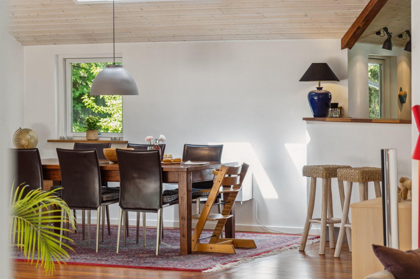 Huset indeholder et stort fællesområde med køkken i åben forbindelse med spiseplads og stue. Her er masser af albuerum til en god og afslappende ferie. Der er 4 soveværelser med hver 2 sovepladser og 2 badeværelser, som begge har bruseniche og gulvvarme. I bryggerset er der vaskemaskine. På den store træterrasse og i haven er der rig mulighed for at nyde sommeren og det gode vejr.