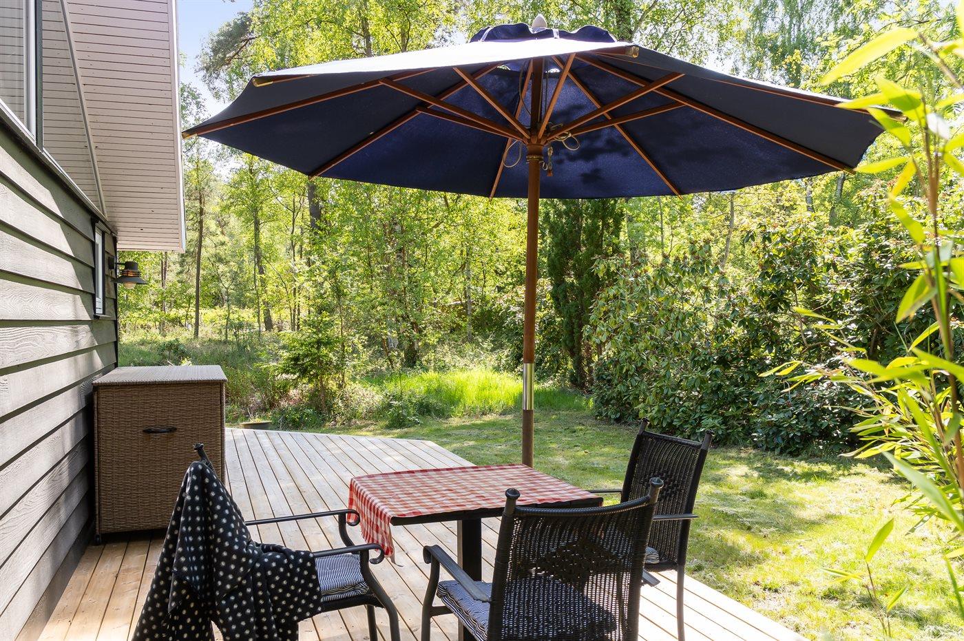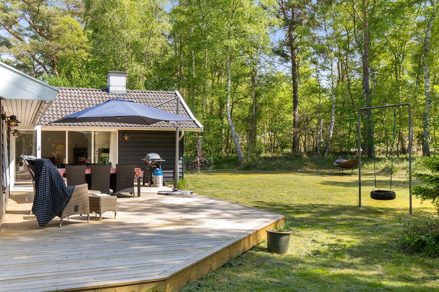 Ferieboligen er beliggende på en 1994 m² stor havegrund. Der er 1100 m til havet. Nærmeste forretning er beliggende i en afstand af 1100 m. Der er en golfbane i en afstand af 7800 m. Til ferieboligen hører 80 m² terrasseareal. Gynge. Grill til rådighed. Parkering ved ferieboligen.