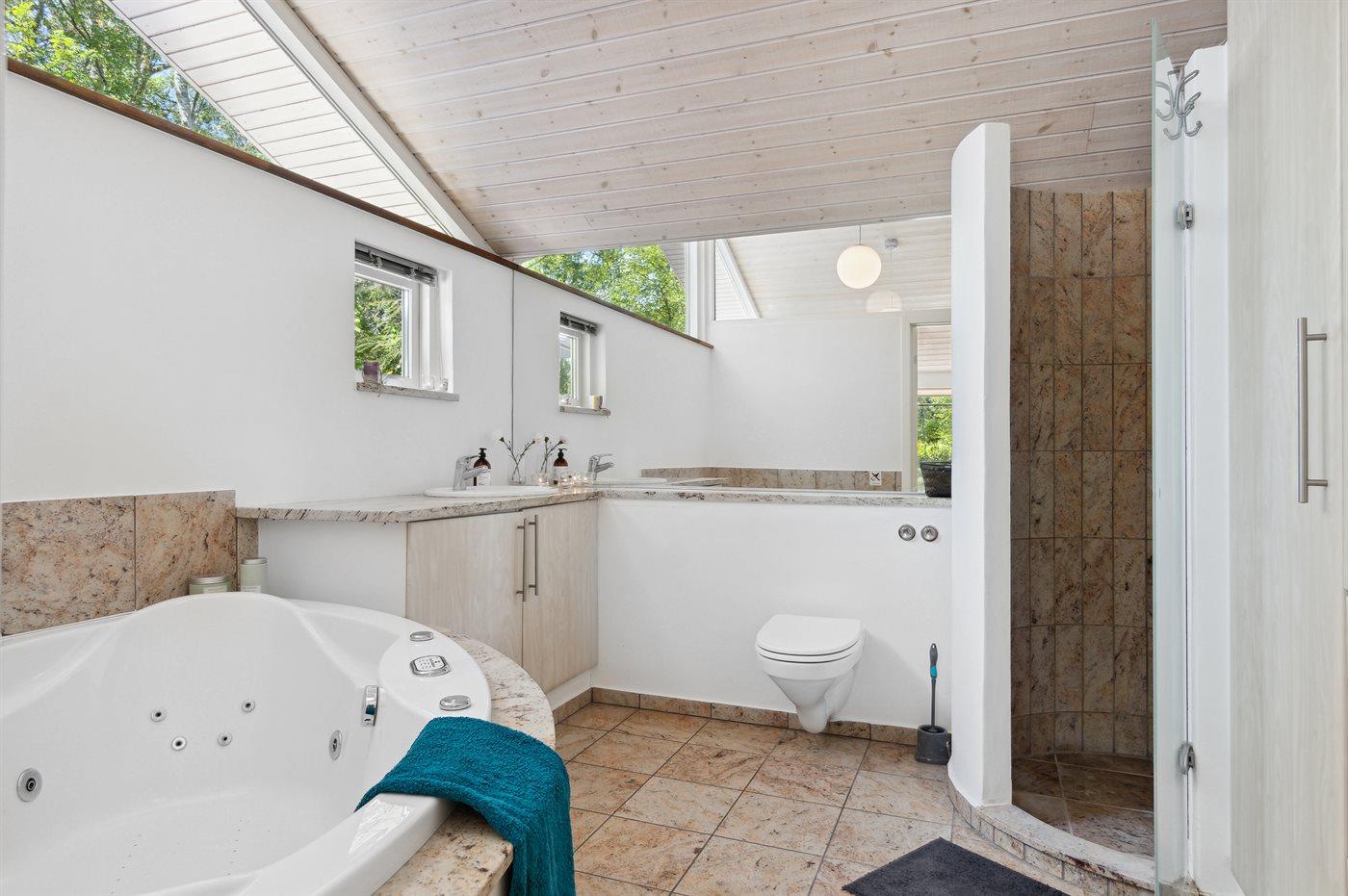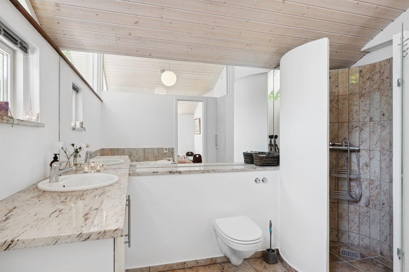 Der er 2 badeværelser med bruseniche og 2 toiletter. Der er gulvvarme på 2 badeværelser.