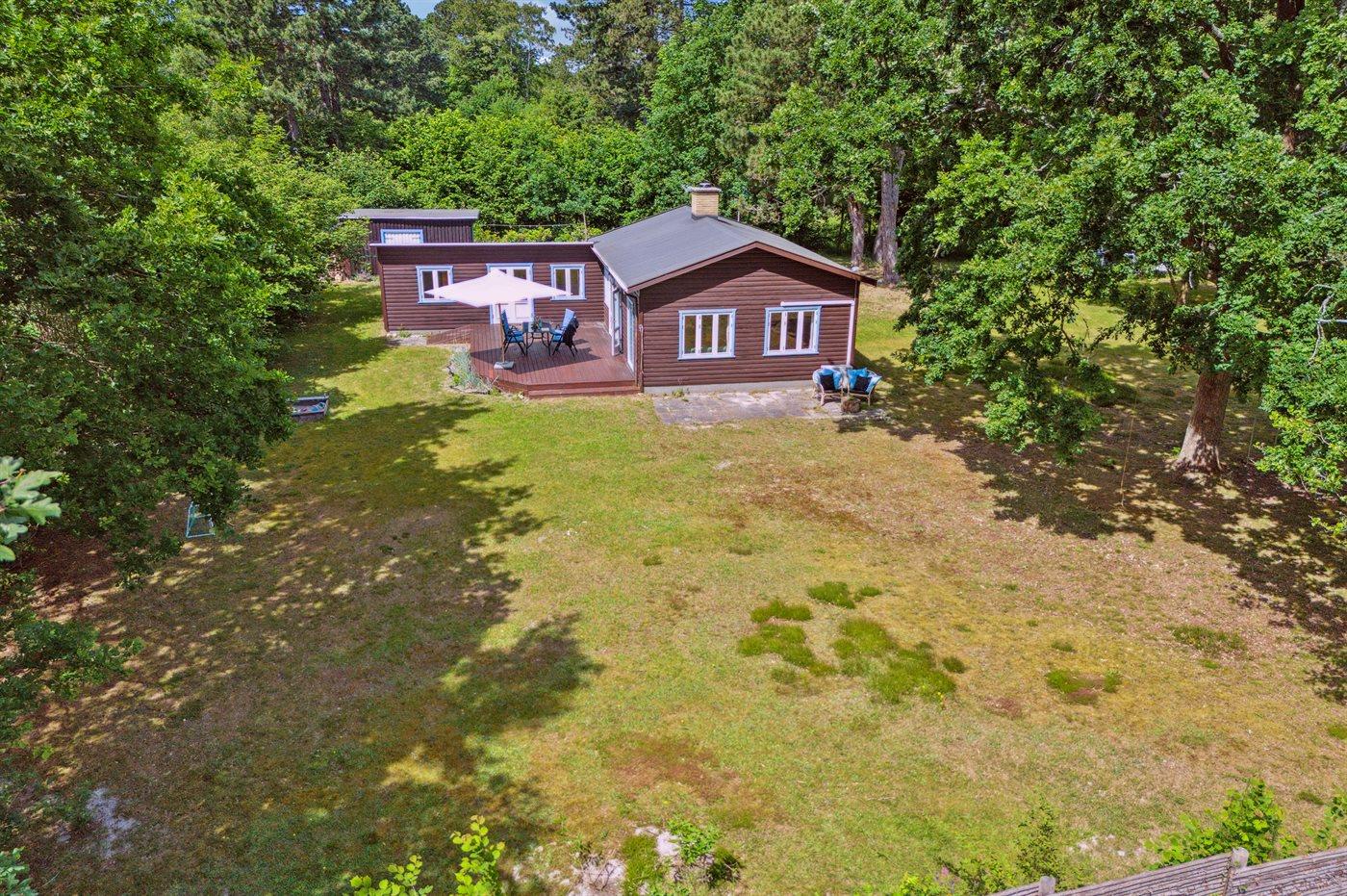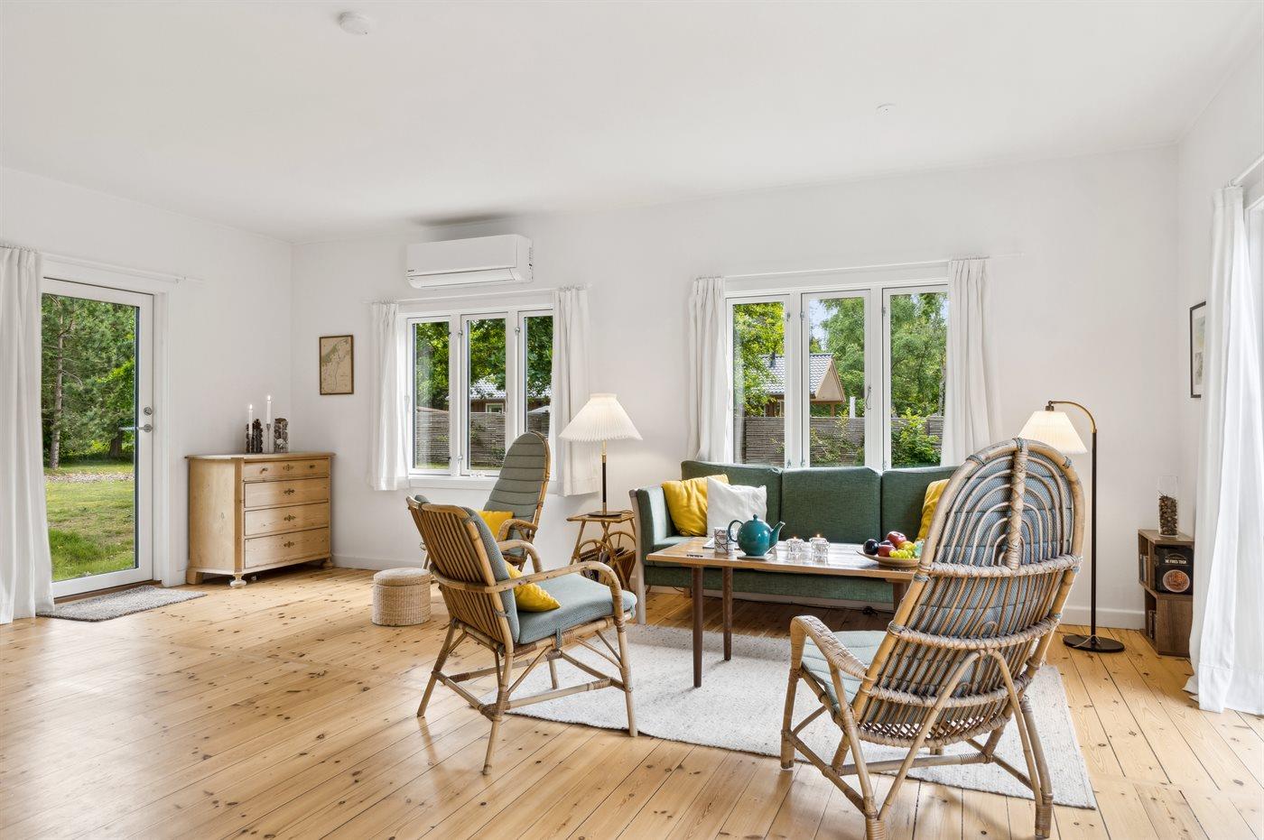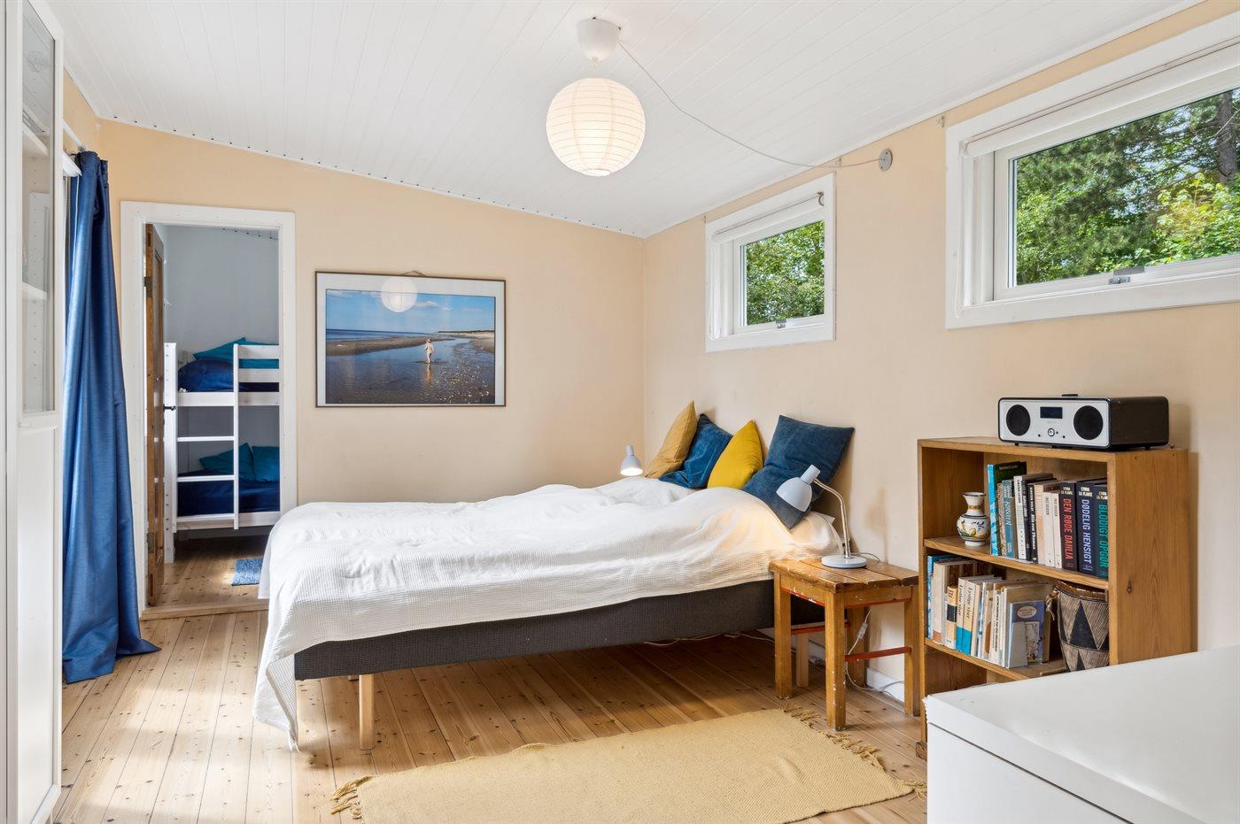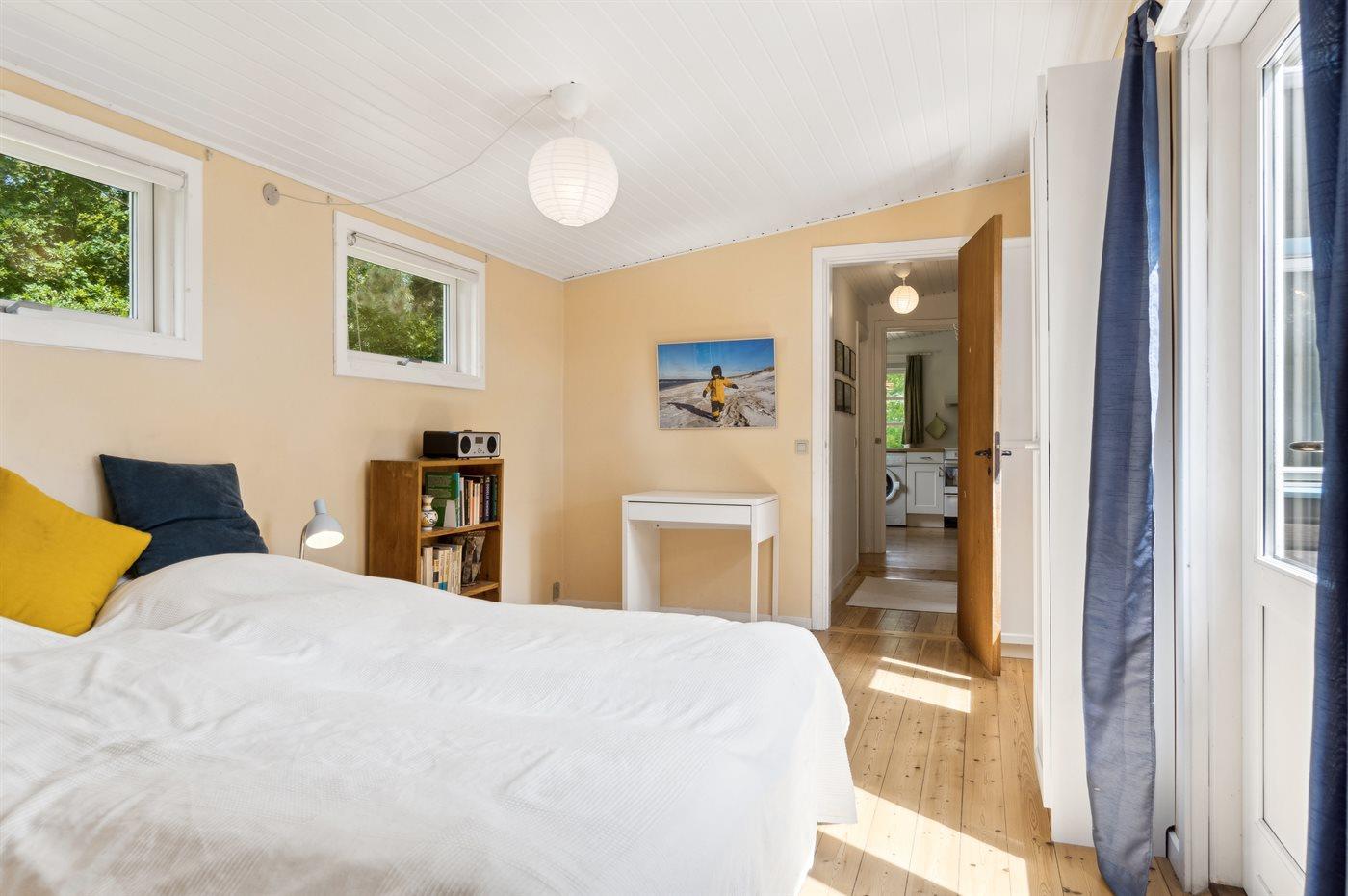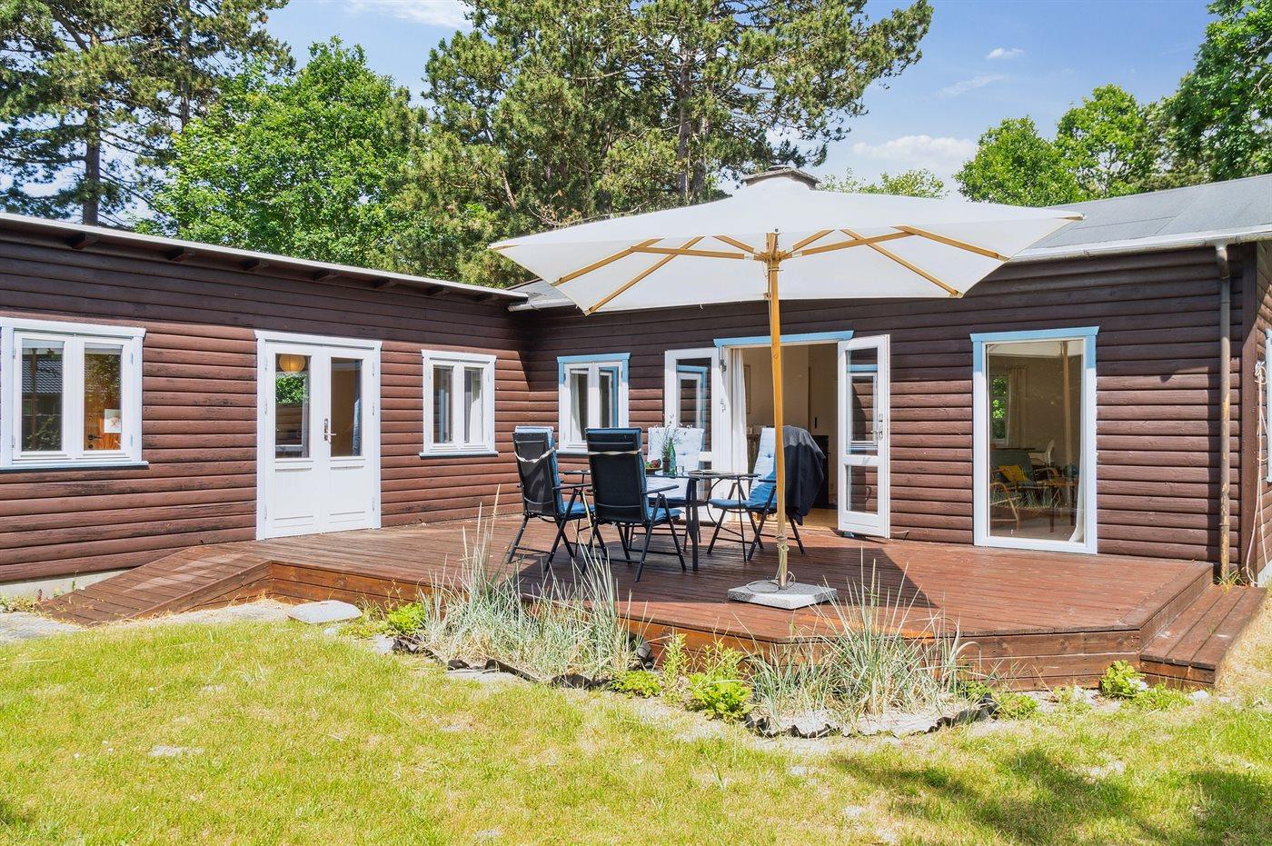 Huset er renoveret i 2022, og kernen i huset er det dejlige lyse opholdsrum med stue og spiseplads, hvorfra der er udgange til terrassen og til den store have, hvor de store træer og den flotte naturgrund bidrager til en næsten sydlandsk stemning. Det rummelige køkken med masser af bordplads grænser op til opholdsrummet. Der er 3 soveværelser. Værelset med dobbeltseng har udgang til terrassen og har gennemgang til det tilstødende værelse, som er med køjeseng. Døren mellem de to værelser kan naturligvis lukkes, og der er mulighed for at benytte havedøren i køjesengsværelse som adgangsvej, så man ikke skal passere igennem værelset med dobbeltseng. Det tredje og sidste soveværelse har 3 sovepladser i køjeseng.