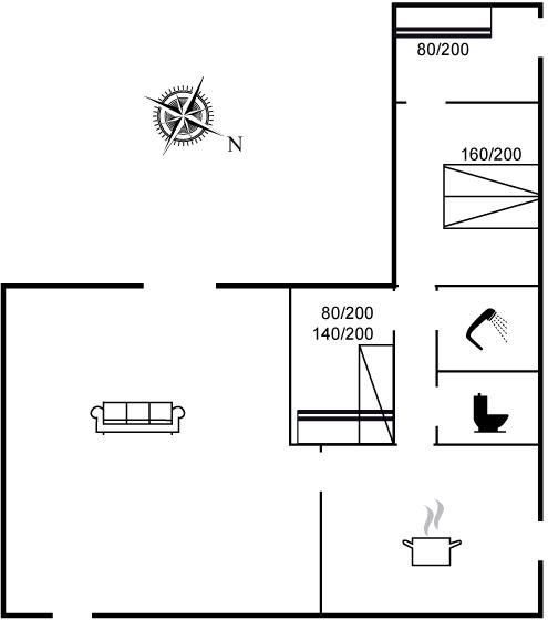 Der er i alt 3 soveværelser. Sovepladserne fordeler sig på: 2 sovepladser i dobbeltseng. 5 sovepladser i køjesenge. Derudover er der 1 stk. barneseng.