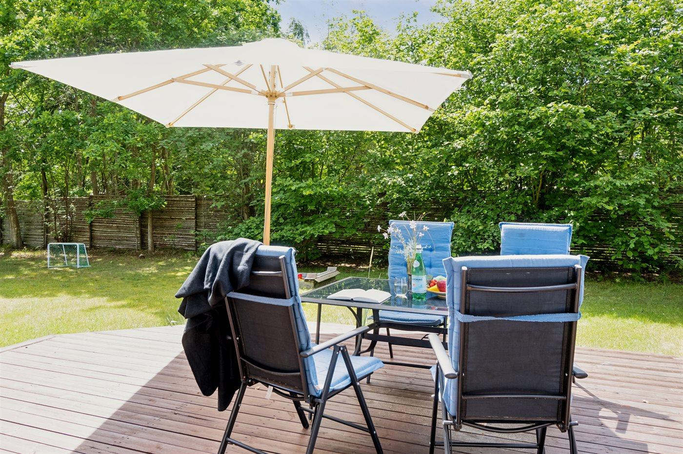 Ferieboligen er beliggende på en 2186 m² stor naturgrund. Der er 1300 m til havet. Der er 1250 m til fjorden. Der er en sø i en afstand af 1750 m. Nærmeste forretning er beliggende i en afstand af 1000 m. Der er en golfbane i en afstand af 9000 m. Til ferieboligen hører 35 m² terrasseareal. Gynge. Der ligger en legeplads i en afstand af 1000 m. Bålsted. Grill til rådighed. Parkering ved ferieboligen.