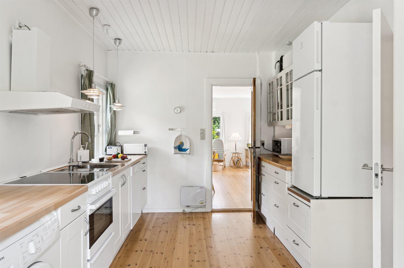Køkkenet er udstyret med 1 køleskab. Der er 4 keramiske kogeplader, varmluftovn, mikrobølgeovn samt opvaskemaskine.