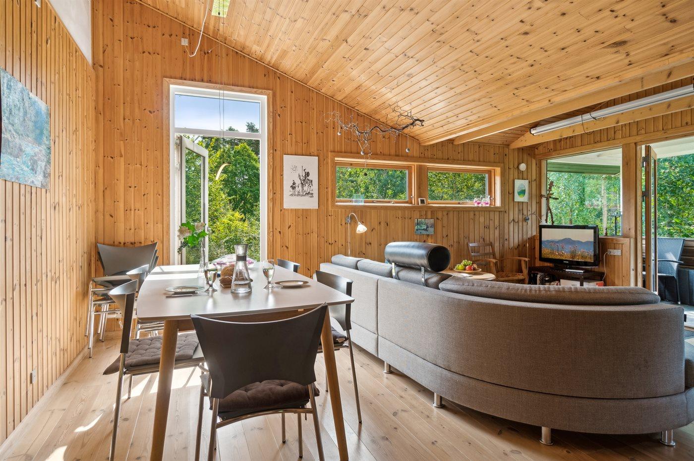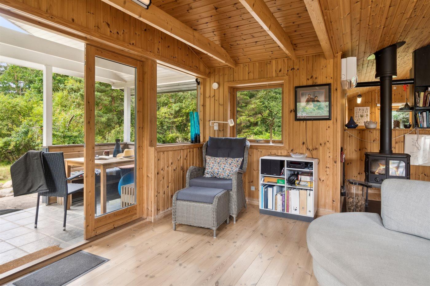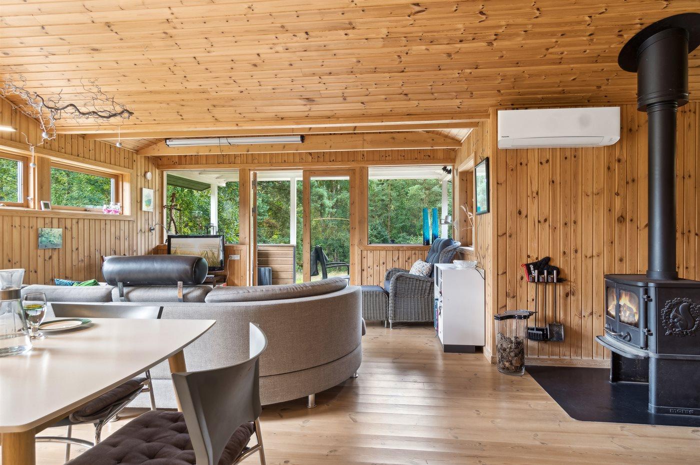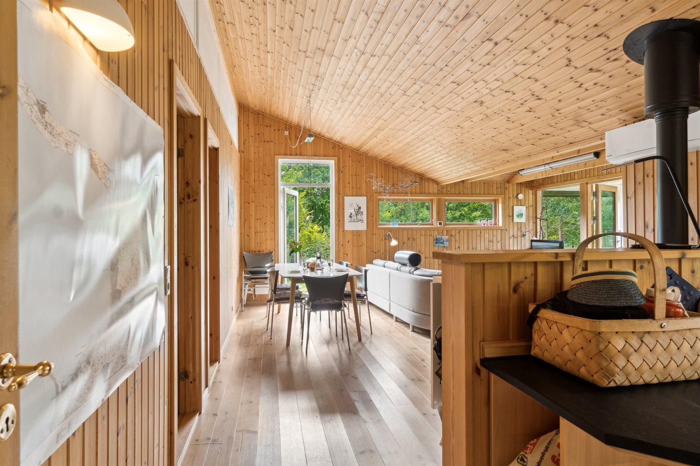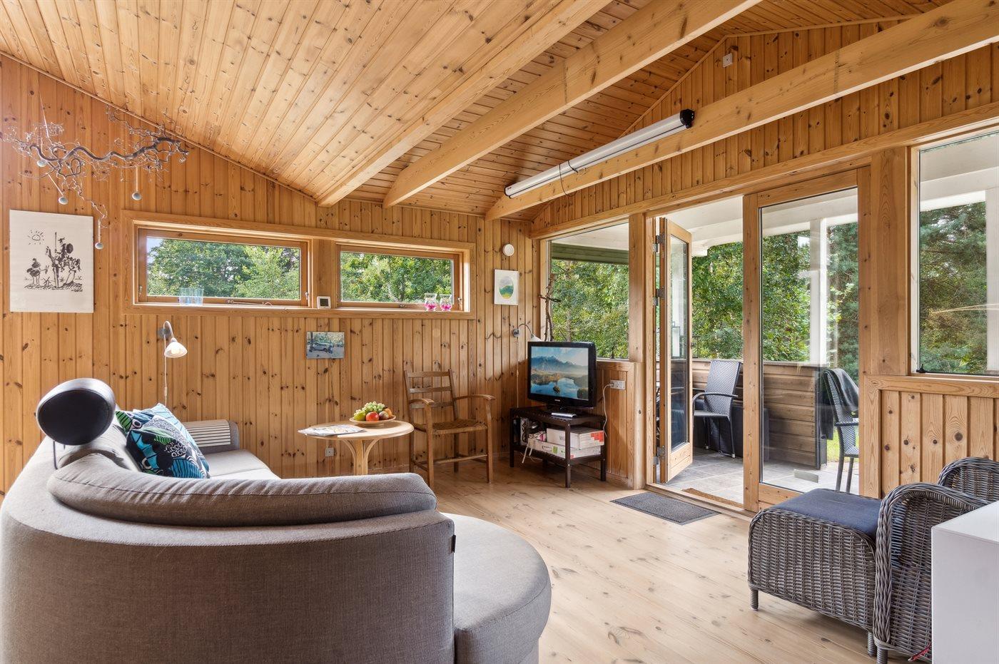 Hjertet i sommerhuset er det store, dejlige køkkenalrum i åben forbindelse med stuen og med udgang til den sydvendte terrasse, hvor en del er overdækket. I huset findes 3 soveværelser. Der er 1 værelse med dobbeltseng, 1 med enkeltseng og 1 med en dobbeltsovesofa. Badeværelset er med bruseniche, gulvvarme og vaskemaskine.