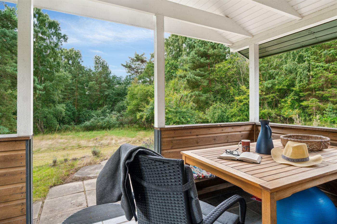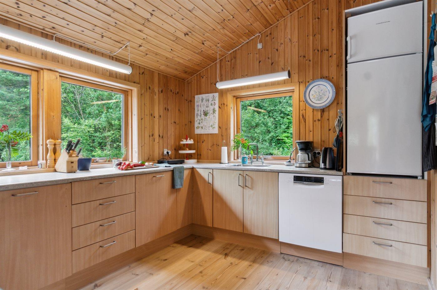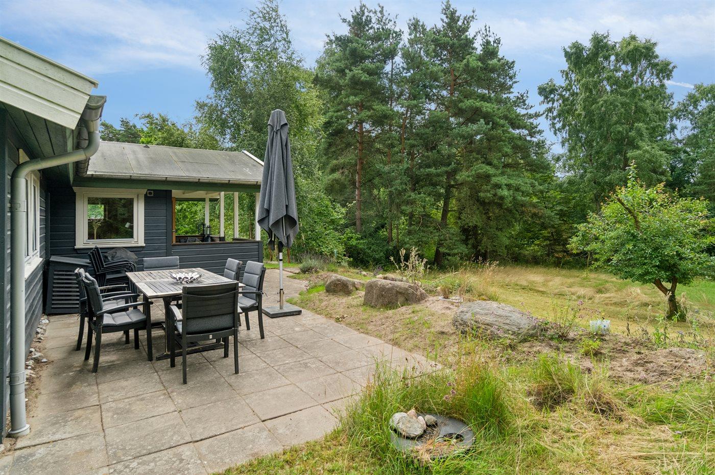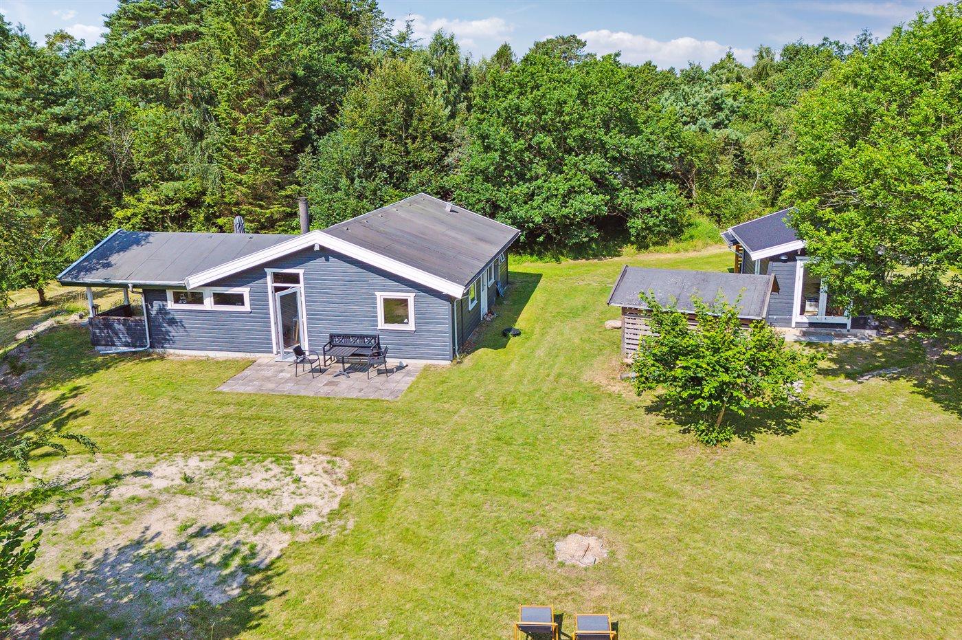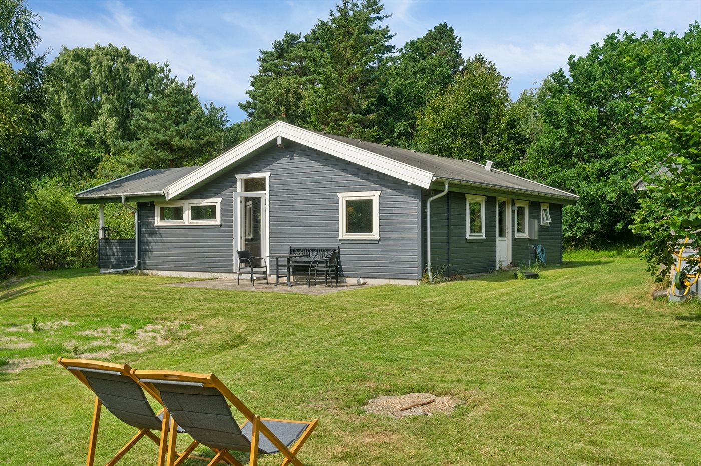 Ferieboligen er beliggende på en 3600 m² stor havegrund. Der er 1200 m til havet. Der er 1250 m til fjorden. Der er en sø i en afstand af 650 m. Nærmeste forretning er beliggende i en afstand af 1750 m. Der er en golfbane i en afstand af 10600 m. Til ferieboligen hører 70 m² terrasseareal. Desuden er der 10 m² overdækket terrasse. Der er mulighed for at tilberede maden udendørs i udekøkkenet. Grill til rådighed. Parkering ved ferieboligen.