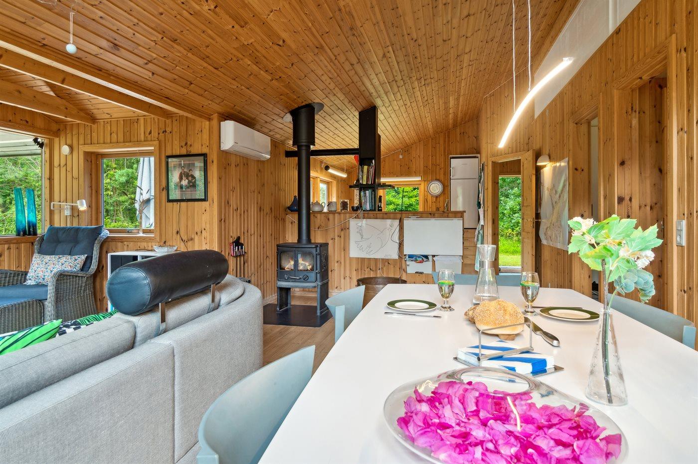 Sommerhuset egner sig til 7 personer samt 1 barn op til 3 år. Ferieboligen er på 103 m² og er bygget i 2001. Det er tilladt at medbringe 2 husdyr. Ferieboligen er udstyret med 1 energibesparende luft til luft varmepumpe. Ferieboligen har vaskemaskine. Frysekapacitet på 40 liter. Der er desuden brændeovn. Til de små er der 1 stk. barnestol. Puslebord.