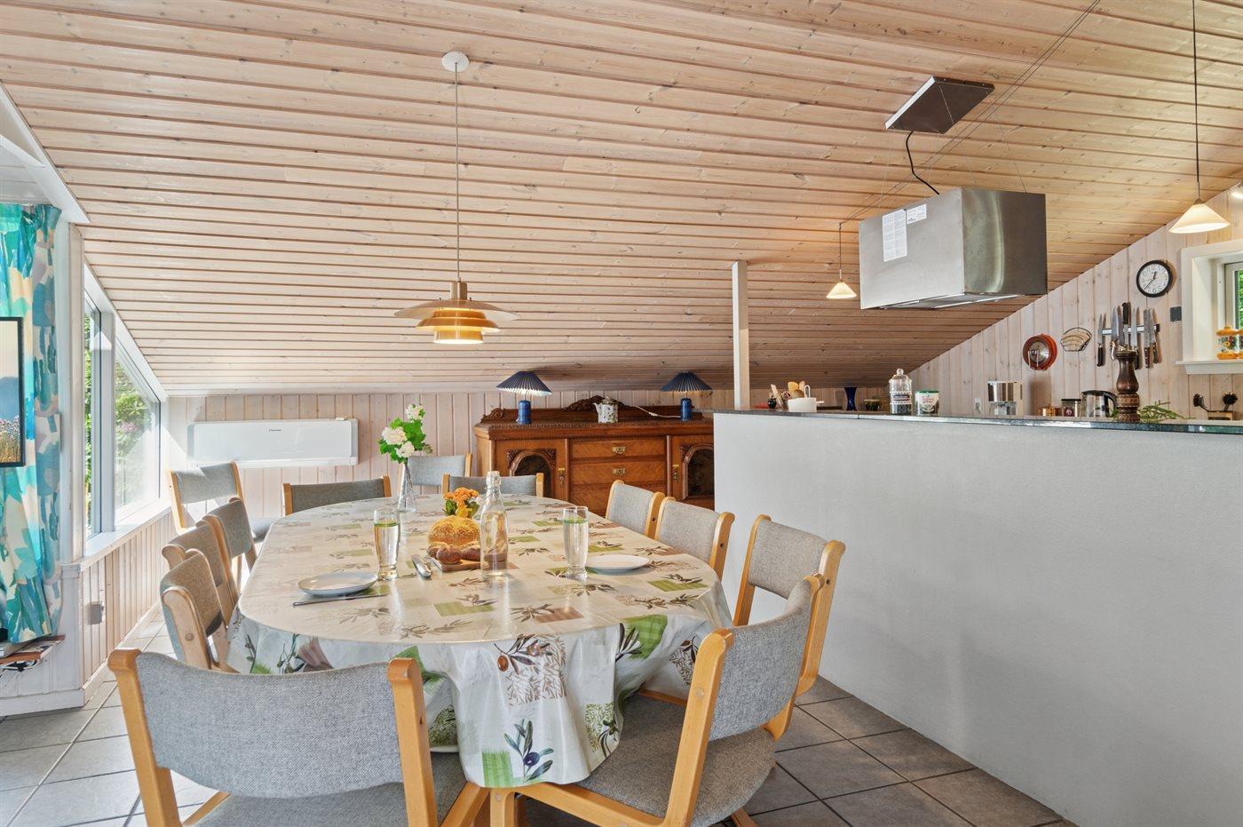 Sommerhuset egner sig til 10 personer. Ferieboligen er på 176 m² og er bygget i 1956. Det er tilladt at medbringe 2 husdyr. Ferieboligen er udstyret med 2 energivenlige luft til luft varmepumper. Ferieboligen har vaskemaskine. Tørretumbler. Frysekapacitet på 60 liter. Der er desuden brændeovn.