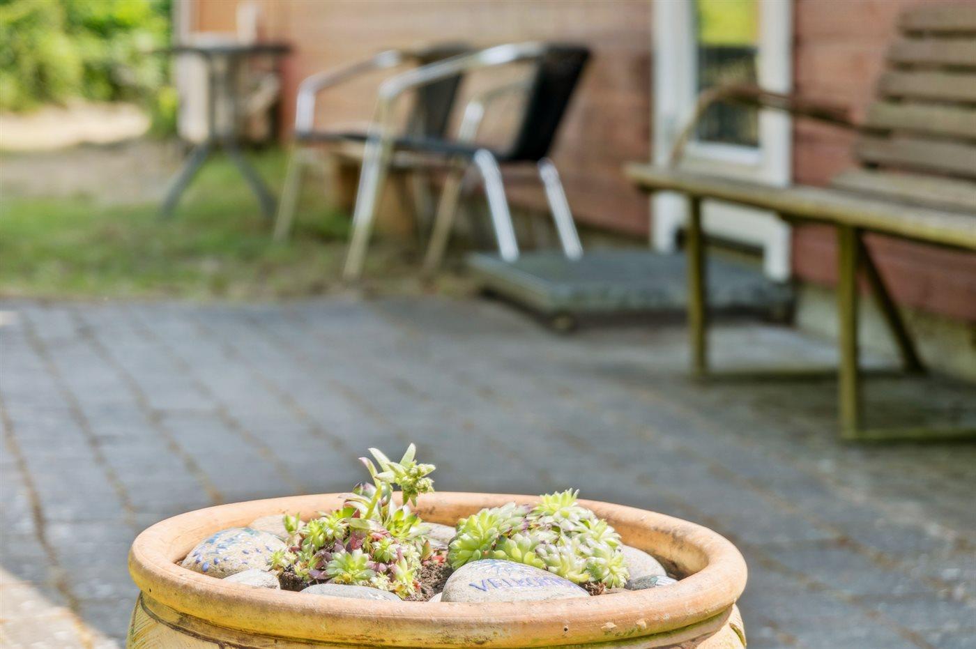 Ferieboligen er beliggende på en 1866 m² stor havegrund. Der er 1300 m til havet. Der er 1600 m til fjorden. Nærmeste forretning er beliggende i en afstand af 1350 m. Der er en golfbane i en afstand af 8450 m. Til ferieboligen hører åbent terrasseareal. Grill til rådighed. Parkering ved ferieboligen.