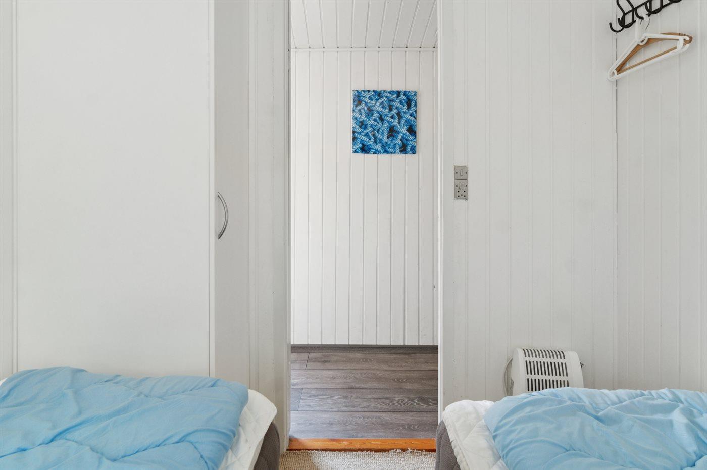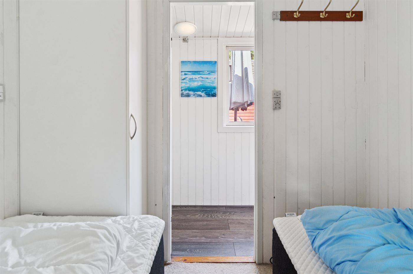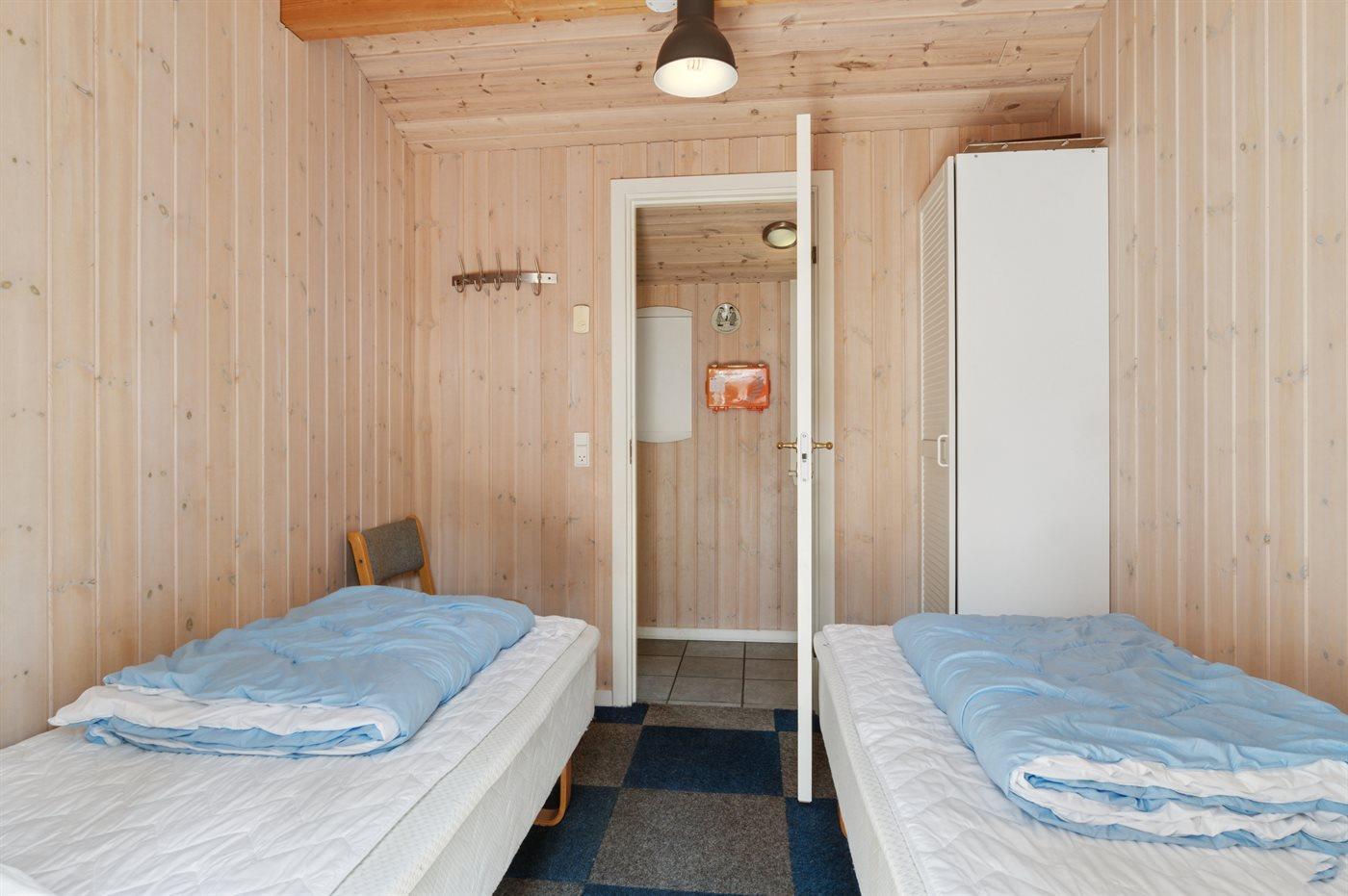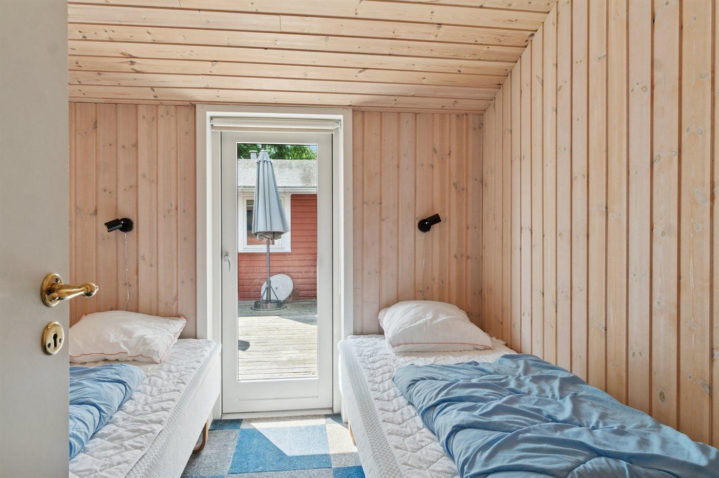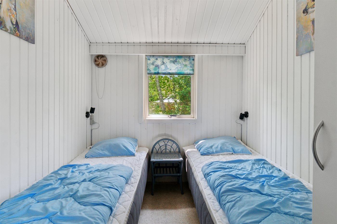 Der er i alt 5 soveværelser. Sovepladserne fordeler sig på: 4 sovepladser i dobbeltsenge. 6 sovepladser i enkeltsenge.