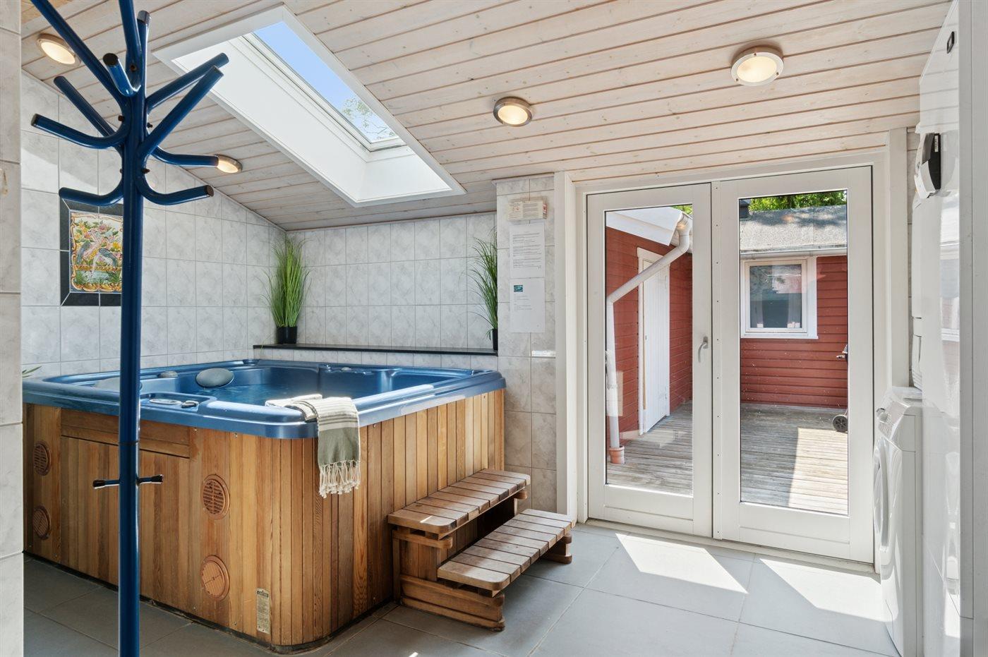 I den indendørs standvandsspa er der plads til 4 personer.