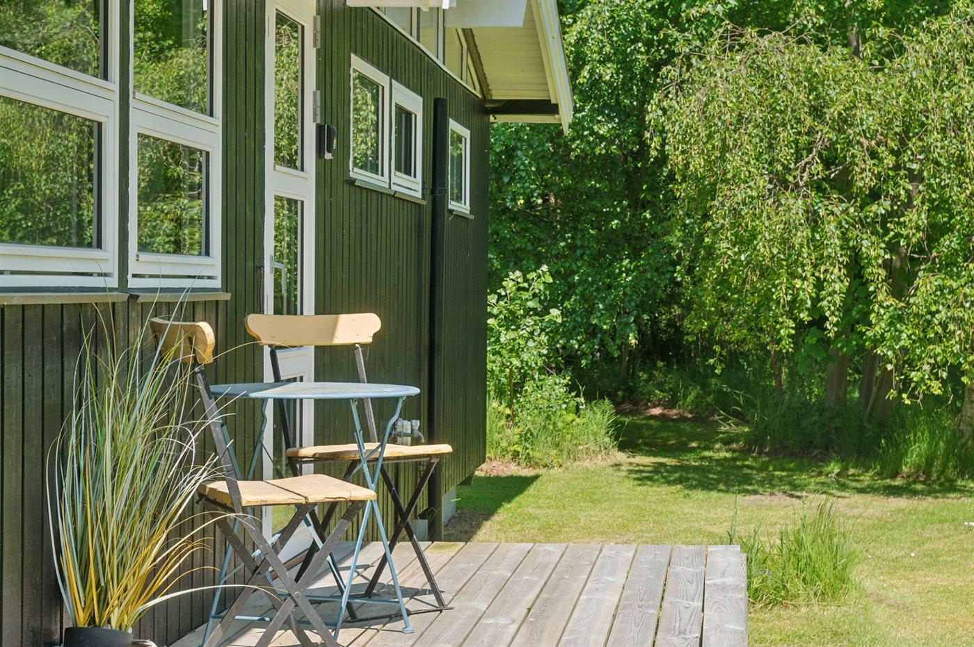 Ferieboligen er beliggende på en 2524 m² stor havegrund. Der er 1700 m til havet. Der er 5000 m til fjorden. Der er en sø i en afstand af 2000 m. Nærmeste forretning er beliggende i en afstand af 1900 m. Der er en golfbane i en afstand af 15000 m. Til ferieboligen hører 16 m² terrasseareal. Grill til rådighed. Der er carport til rådighed. Parkering ved ferieboligen.