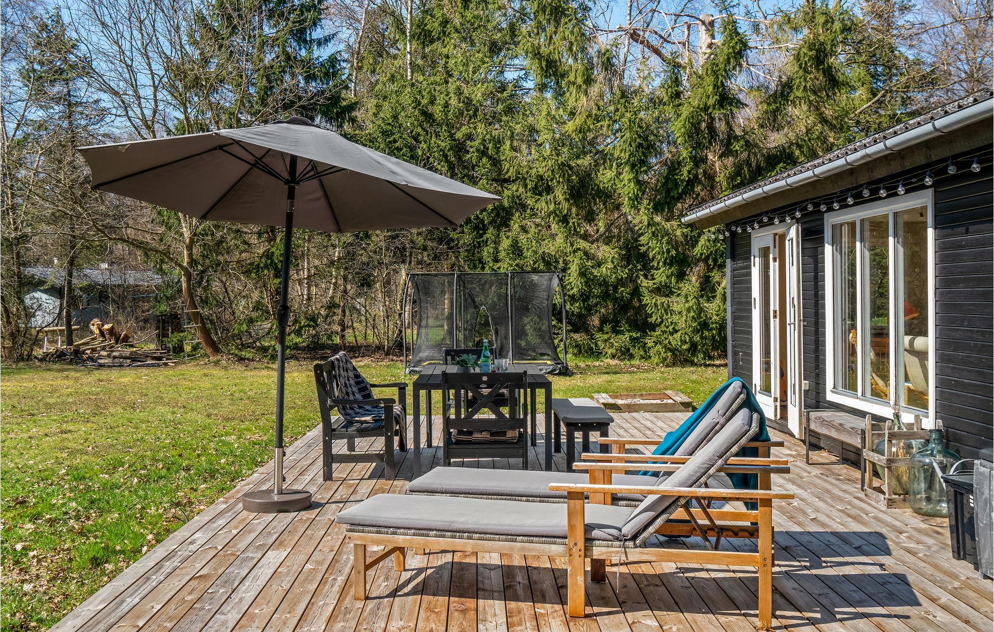 Se børnene lege på den store naturgrund, hoppe på trampolinen og grave i sandkassen, mens I sætter jer til rette på terrassen og nyder solen. Senere kan I nyde en lækker middag fra grillen.