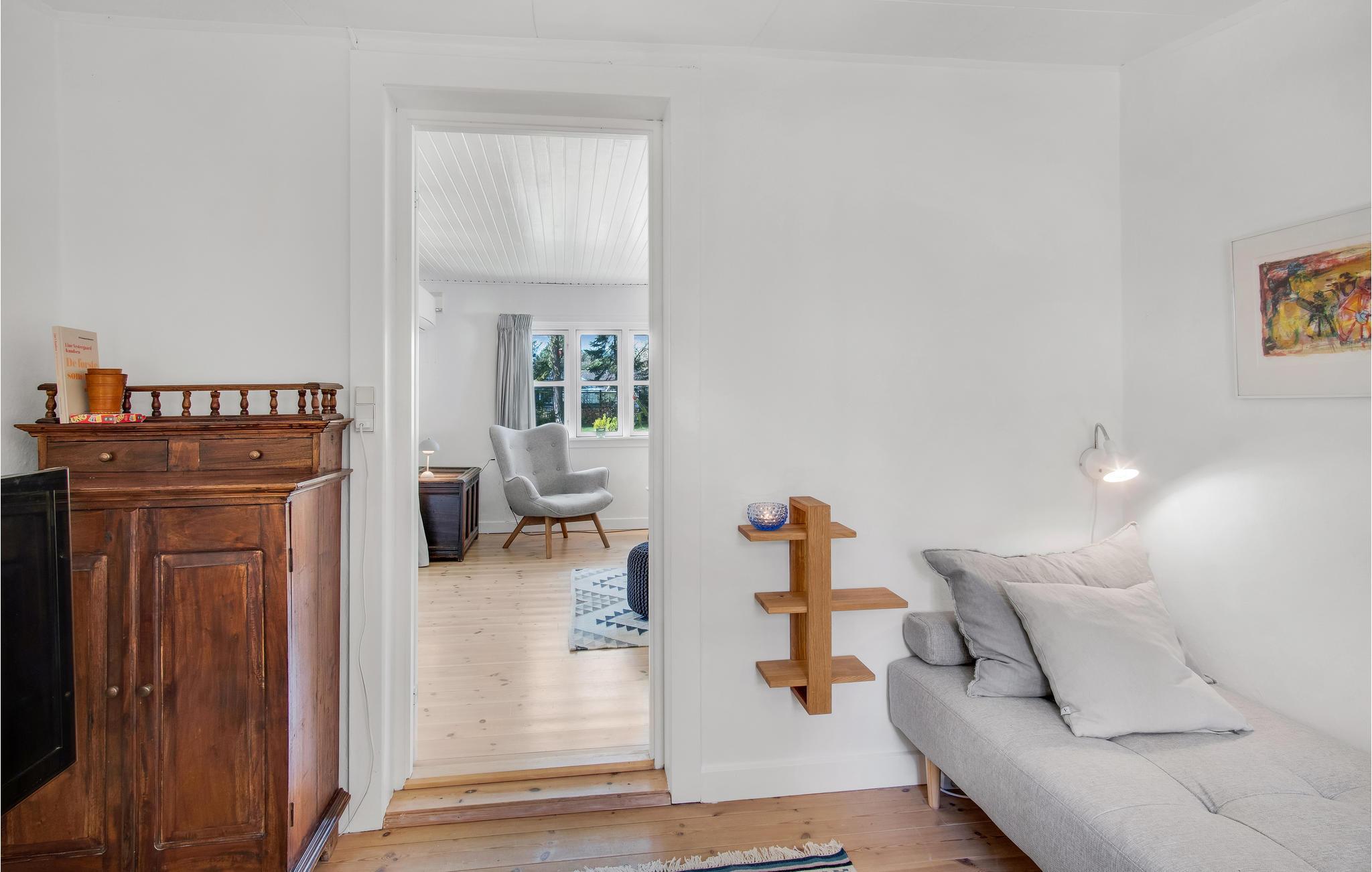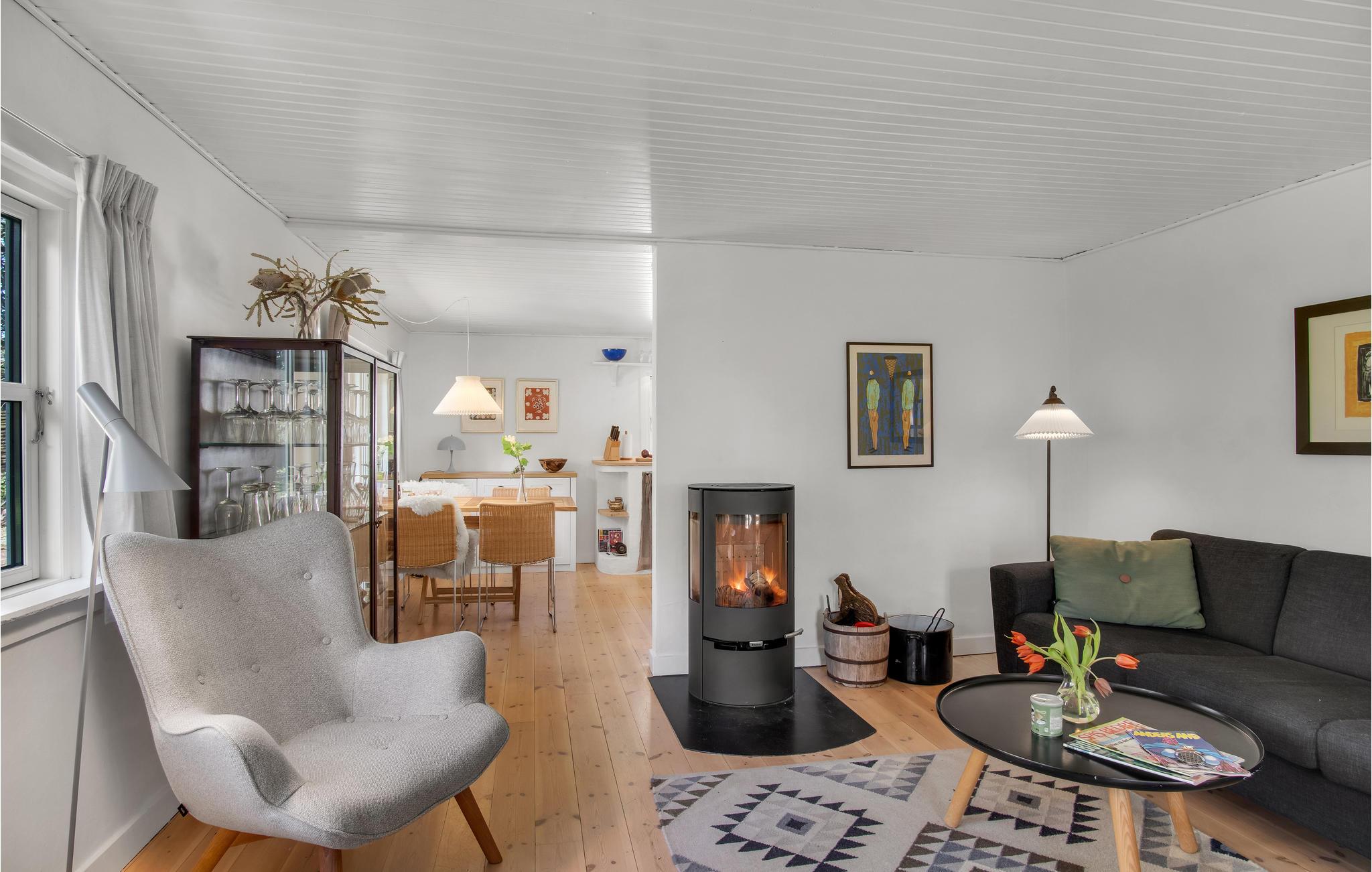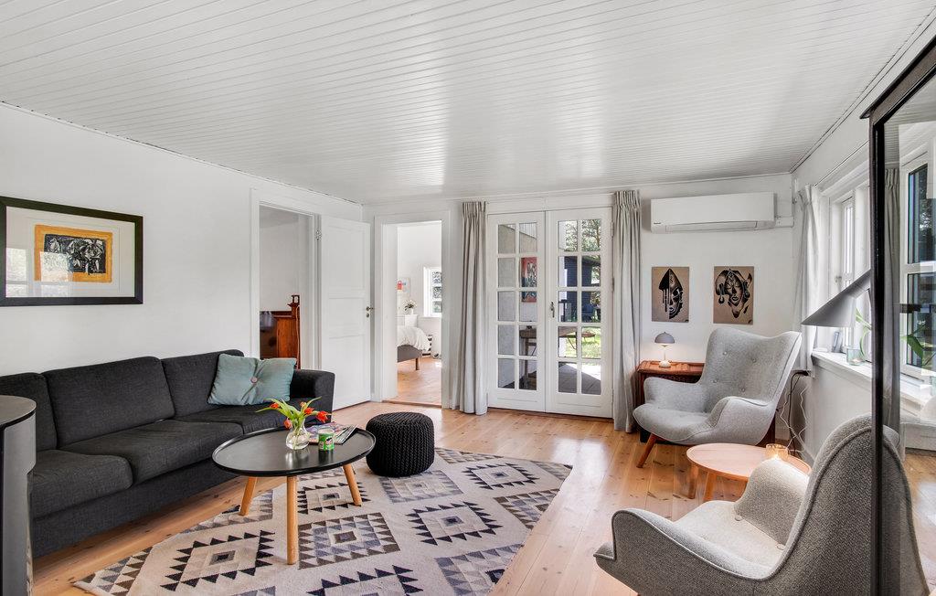 Charmerende sommerhus nær skov og strand i Øster Lyng med moderne faciliteter og fredelige omgivelser.