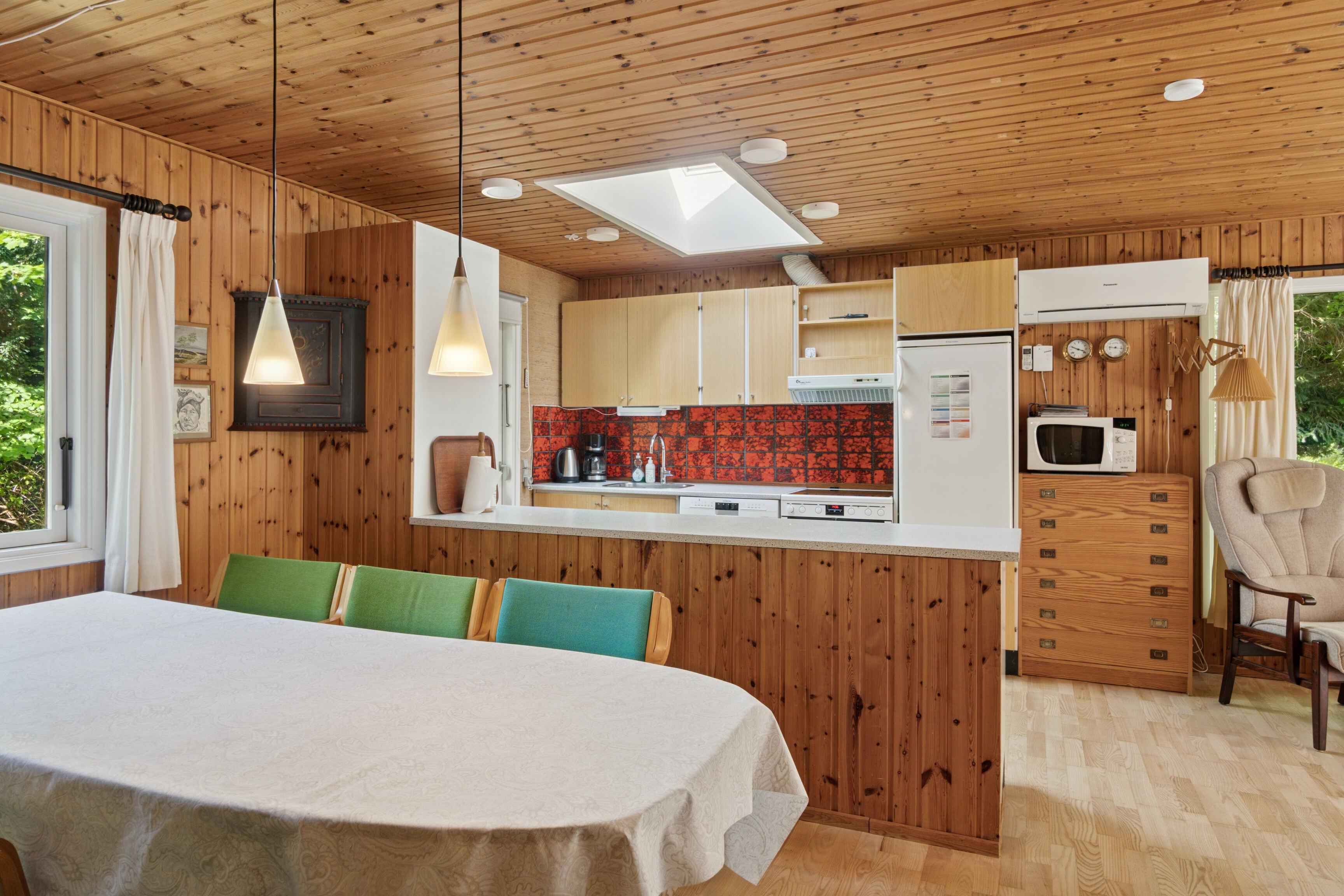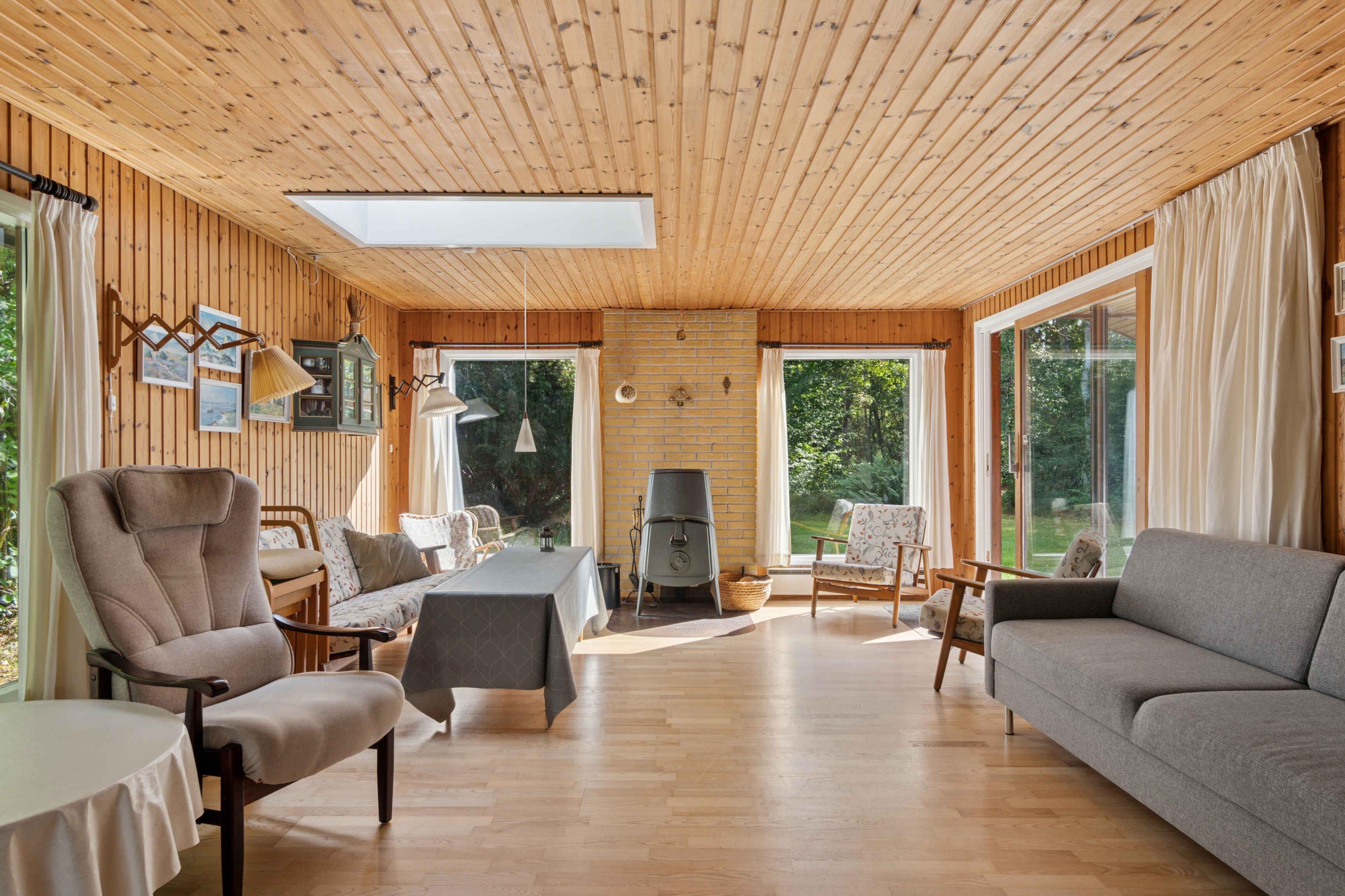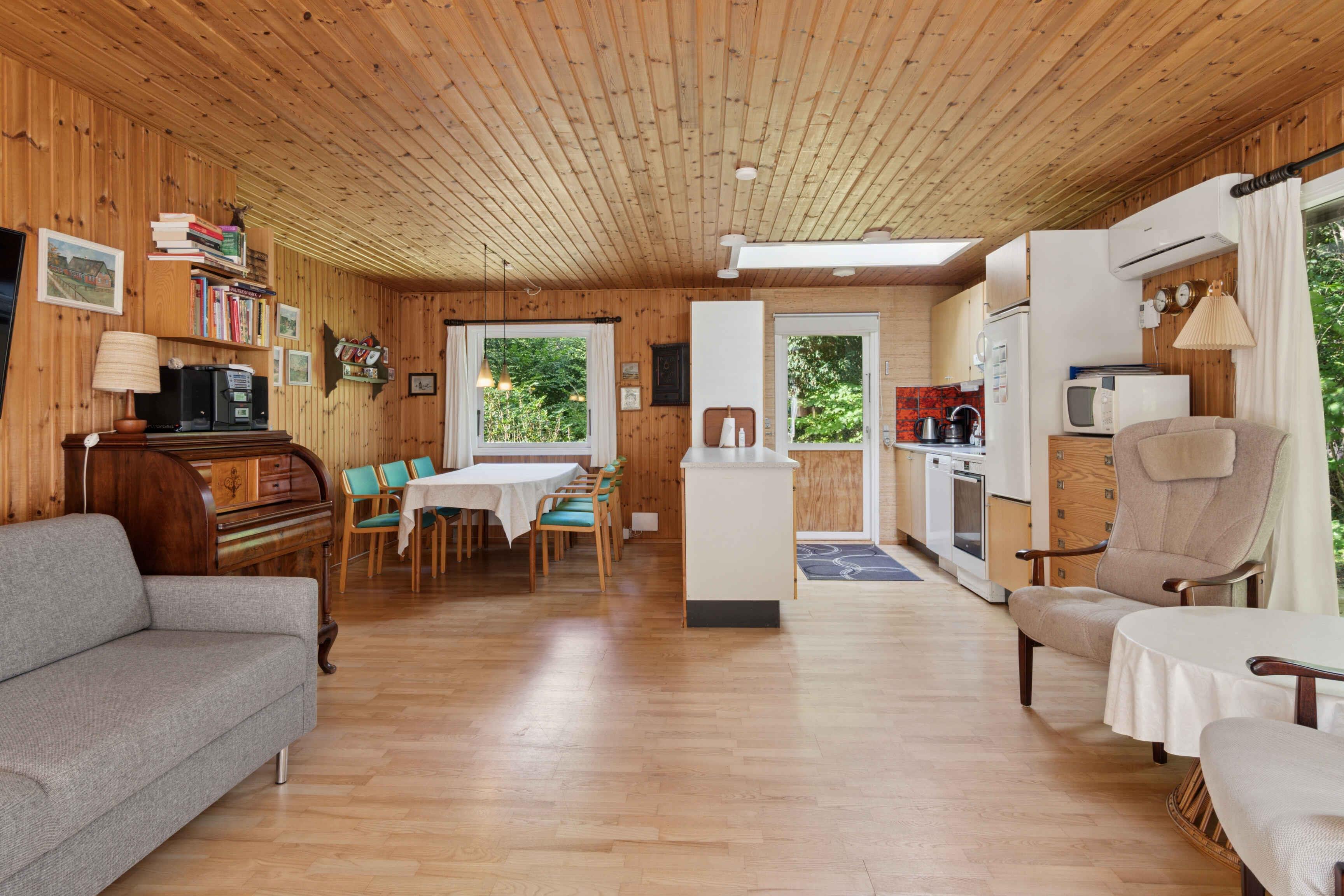 Dette hyggelig og praktisk indrettede sommerhus rummer 106 m² med plads til otte personer fordelt på fire soveværelser. Det giver gode rammer for både familier og venner, der ønsker at holde ferie sammen i rolige omgivelser tæt på natur og kyst. Opholdsrummet er husets samlingspunkt med brændeovn og store vinduespartier. Herfra er der direkte udgang til en sydvendt fliseterrasse, hvor måltider og afslapning kan nydes under åben himmel. En varmepumpe sikrer et behageligt indeklima året rundt, og huset er udstyret med internet, så arbejde eller streaming også er muligt, hvis der bliver brug for det. Huset ligger på en ugenert naturgrund med græsplæne, hvor der er plads til leg og boldspil. Der er skov omkring huset, og her møder man ofte rådyr. Dybesø er et meget idyllisk naturområde med rigt fugleliv og omkranset af plantage og krat. Der er gangsti på ca. 1,9 km hele vejen rundt om søen, og der er kun ca. 70 meter mellem Kattegat og Dybesøs nordligste punkt, som derved er den sø i Danmark, som ligger tættest på havet. Rørvig by og den hyggelige havn er altid et besøg værd, og der er masser af aktiviteter for børn og voksne. Forlystelsesparken Sommerland Sjælland ligger kun ca. 15 min kørsel fra huset, mens Nykøbing Sj. med dens hyggelige gågade, små butikker, teater og havn er ca. 10 min kørsel væk. Derudover er Odsherred kendt for sine mange små gallerier og specialværksteder. Her kombineres komforten i et moderne feriehus med adgang til et område, hvor natur, kystliv og lokal atmosfære går hånd i hånd.