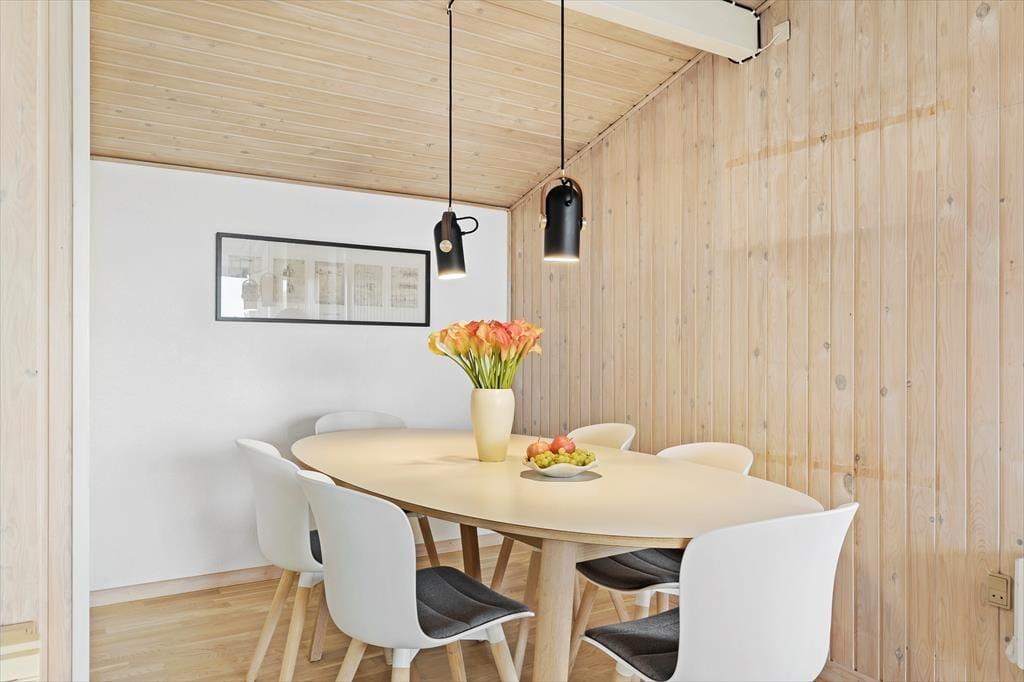 Den lyse og moderne indrettede opholdsstue imponerer med store vinduer, der lukker masser af naturligt lys ind og giver en fantastisk udsigt over fjorden. Fra stuen er der adgang til en hyggelig udestue med hjørnesofa samt en delvis overdækket terrasse, som er perfekt til afslapning. Huset rummer også en god spiseplads, komfortable sofaer, en brændeovn og en hyggelig krog med lænestole og TV med Boxer-abonnement. Badeværelset er udstyret med bruseniche, badekar og gulvvarme, og der er et ekstra gæstetoilet. De tre soveværelser består af to værelser med dobbeltsenge og et værelse med en stor køjeseng (90x200). Huset opvarmes med varmepumpe, brændeovn og elvarme.