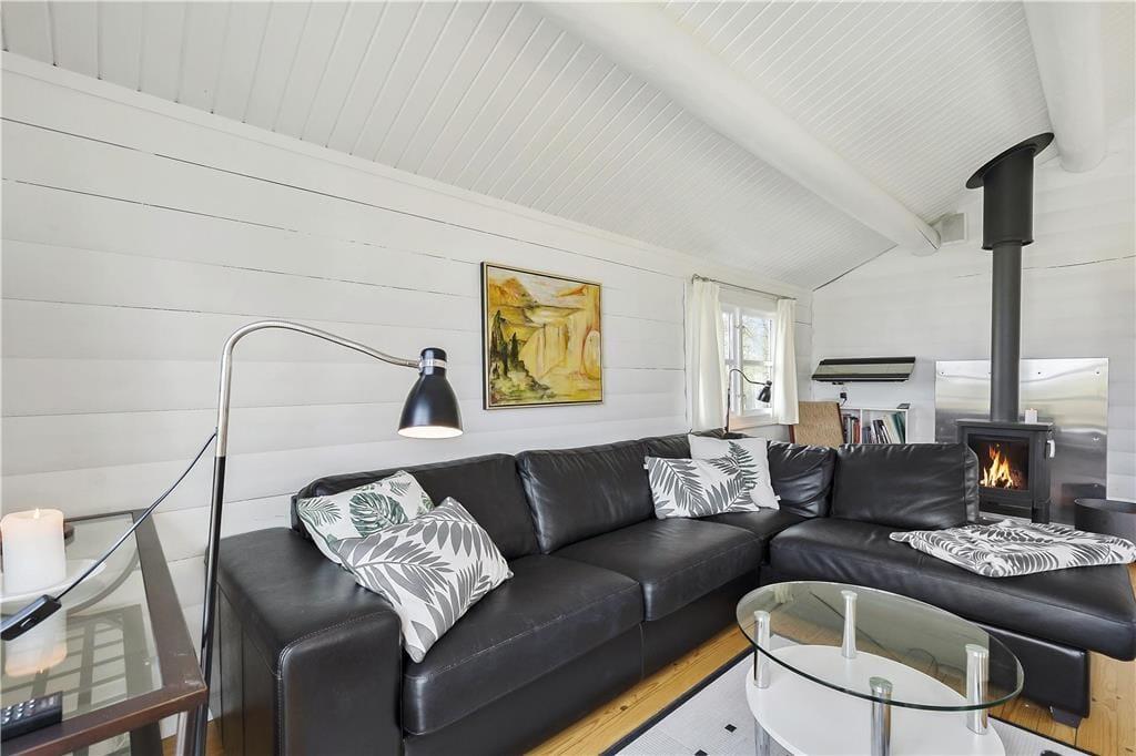 Sommerhus i Røsnæs, Sydvestsjælland, med plads til 4 voksne. Der er en hyggelig indretning med bl.a. brændeovn, og du finder desuden vaskemaskine og opvaskemaskine i boligen.