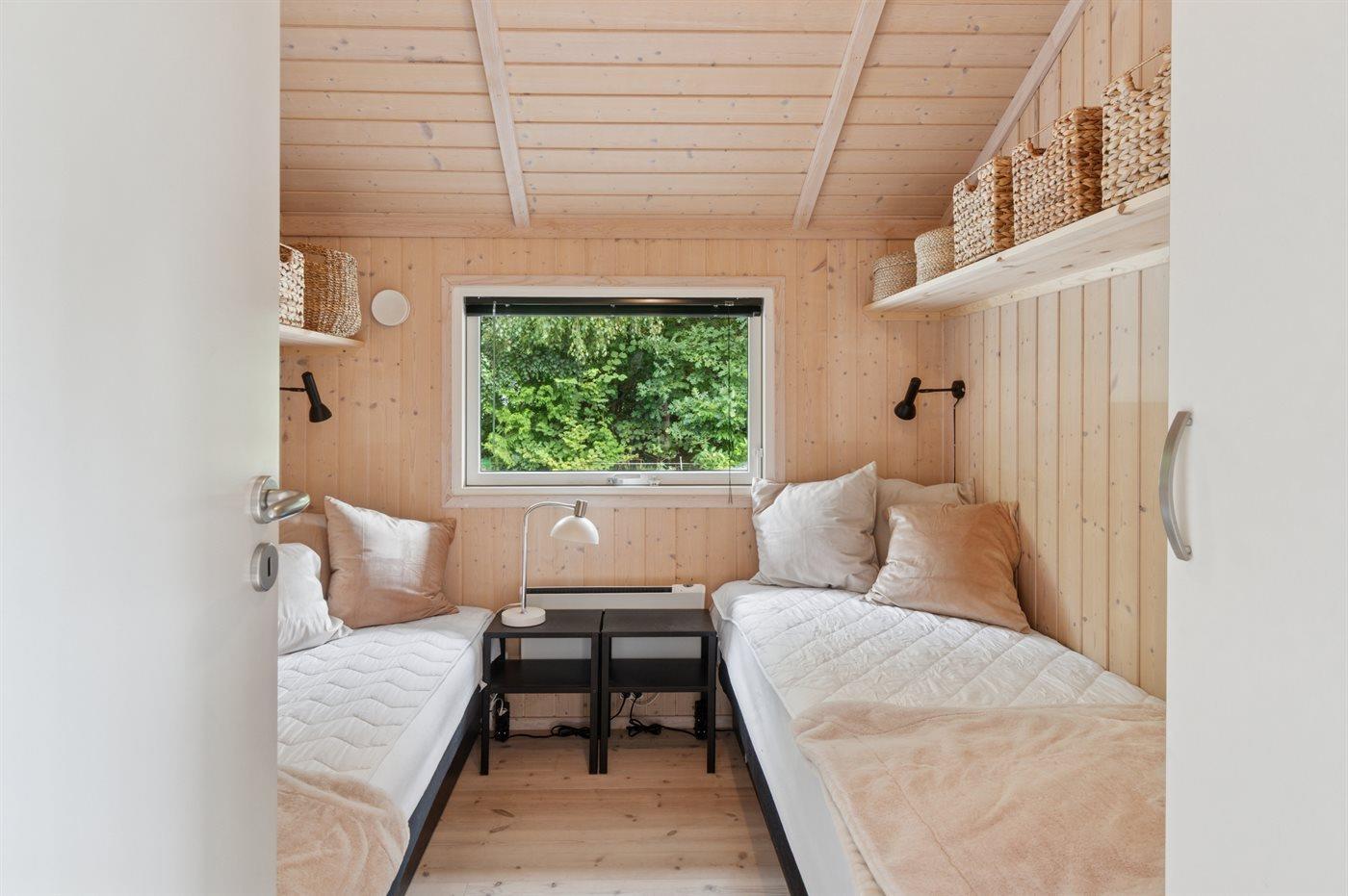 Der er i alt 2 soveværelser. Sovepladserne fordeler sig på: 2 sovepladser i dobbeltseng. 2 sovepladser i enkeltsenge. 2 sovepladser i alkove. 2 af disse sovepladser befinder sig i stuen. Derudover er der 1 stk. barneseng.