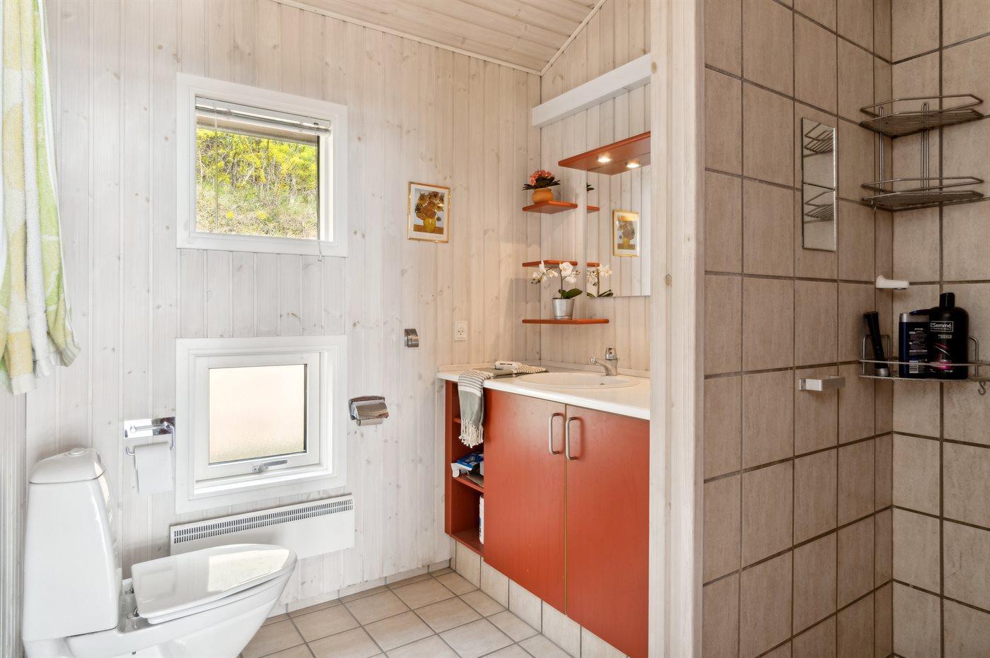 Der er 2 badeværelser med bruseniche og 2 toiletter. Der er gulvvarme på 2 badeværelser.