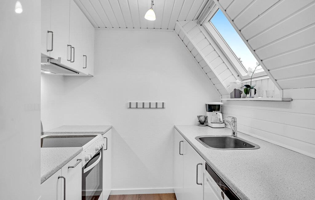 I et attraktivt sommerhusområde på Røsnæs, finder I dette smagfuldt indrettede feriehus. Det er højtbeliggende og har kig til havet. Feriehuset er charmerende indrettet med åbent køkken i forbindelse med stuen, flot badeværelse og soveværelse med en enkeltseng i stueplan. En trappe med gelænder fører op til førstesals soveværelset med en dobbeltseng (ikke til gangbesværede). Fra stuen går I ud på en ugenert terrasse, hvor I kan nyde solen, slappe af med en bog og drømme jer væk. I det tilhørende anneks findes yderligere 2 sovepladser, der er perfekte til et par eller måske medrejsende teenagere. Her er også tænkt på de yngste gæster med flere legesager til rådighed.
