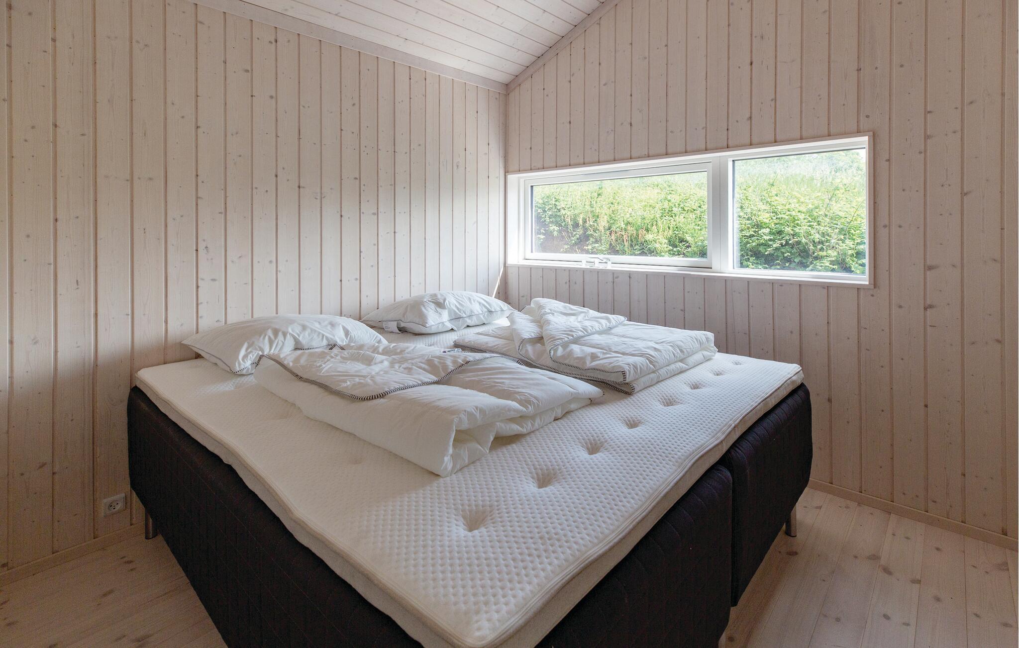Lækkert feriehus med unikt beliggenhed, her er panorama for alle pengene. Huset er opført i 2019, og indeholder et skønt køkken/alrum i kombination med stuen, hvor I overalt kan nyde den enestående udsigt og direkte adgang til den åbne som overdækkede terrasse. Endvidere indeholder feriehuset badeværelse med brus, gæstetoilet og tre soveværelser. I feriehuset findes internetbaseret tv via en tablet og chromecast. Træk stikket ud og nyd udsigten, lige huset til at lade batterierne op igen.