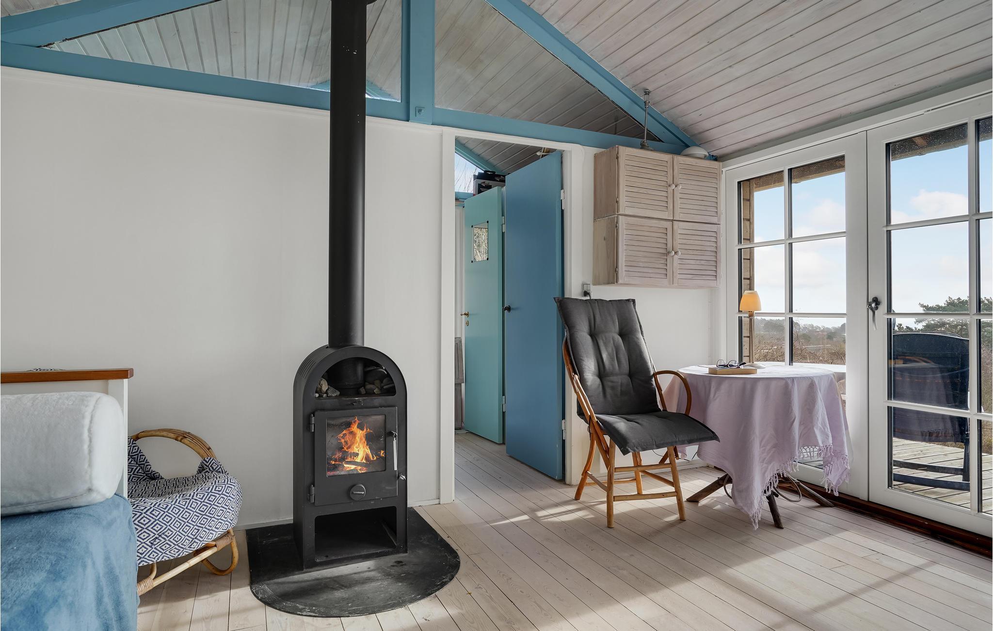 Der er lagt op til nogle dejlige feriedage med familien tæt ved Røsnæs Strand. Her giver dette helt særlige sommerhus jer nogle fredfyldte rammer, hvor I kan lade op inde og ude, læse bøger og spille brætspil, mens ilden buldrer i stuens hyggelige brændeovn. Det lille køkken er udstyret med alt, hvad I skal bruge til at fremtrylle feriens måltider. Den store træterrasse giver jer et dejligt sted at nyde morgenkaffen og afslutte dagene med lækre grillretter.