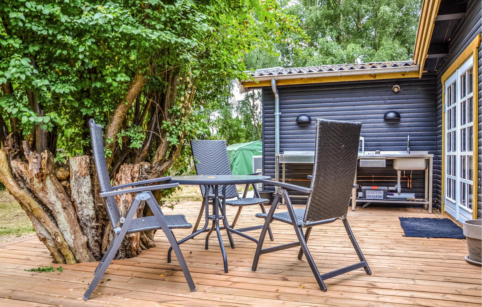 Et lille, hyggeligt lyst indrettet feriehus der ligger tilbagetrukket på grunden i et fredeligt område. Der er mulighed for at gå skønne ture ned til en sø og samtidig nyde den smukke natur. Soveværelse 1 er et gennemgangsværelse. Der er en stor dejlig træterrasse, hvor man kan sidde og hygge sig og sole sig på solskinsdage.