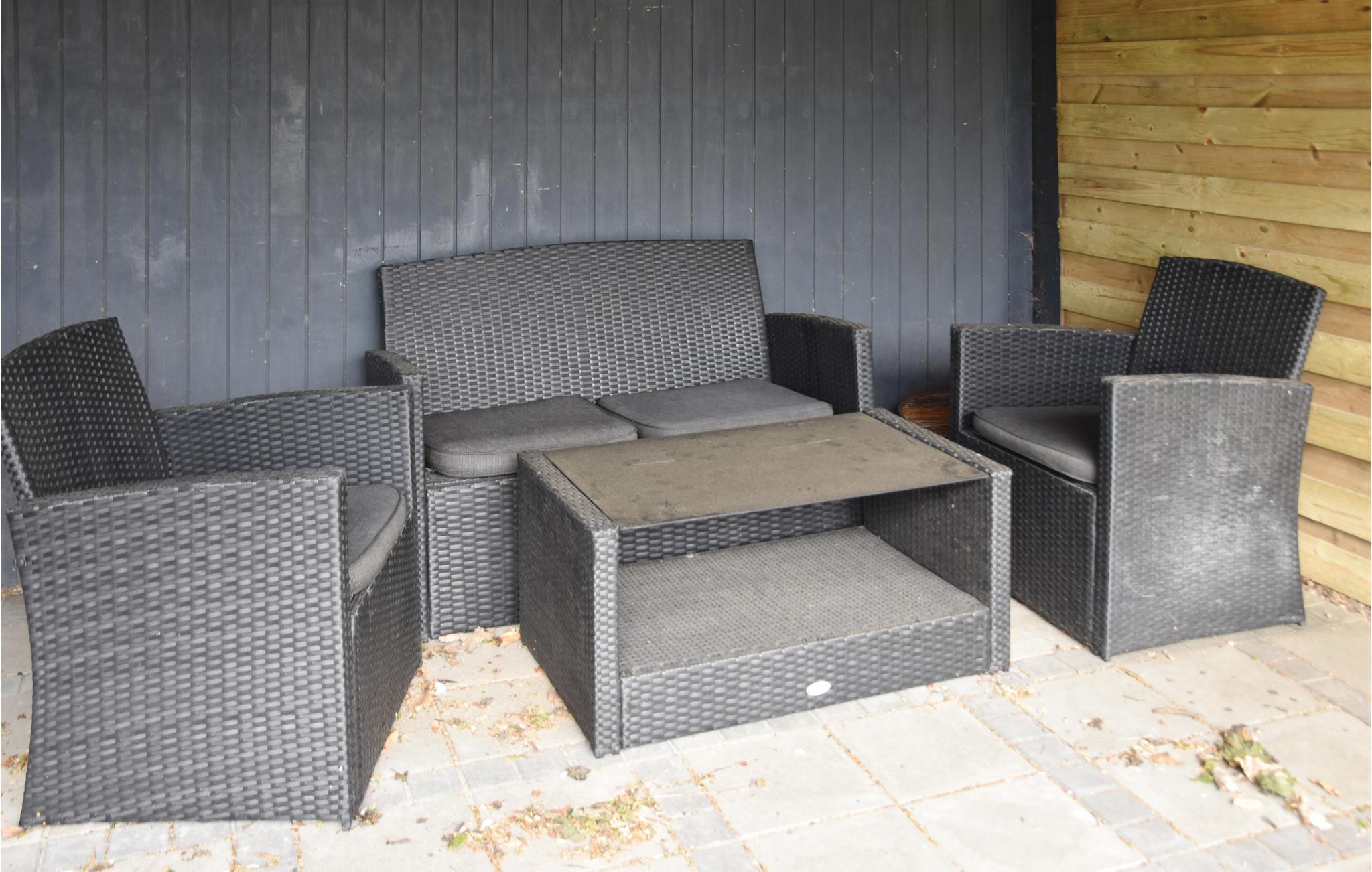 Hyggeligt byhus i Ramme med spa, stor terrasse og aktivitetsrum tæt på natur og strand.
