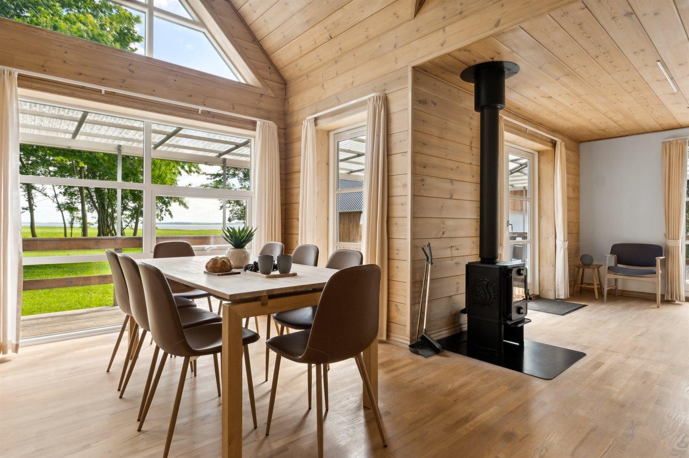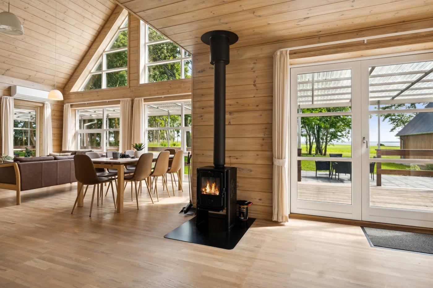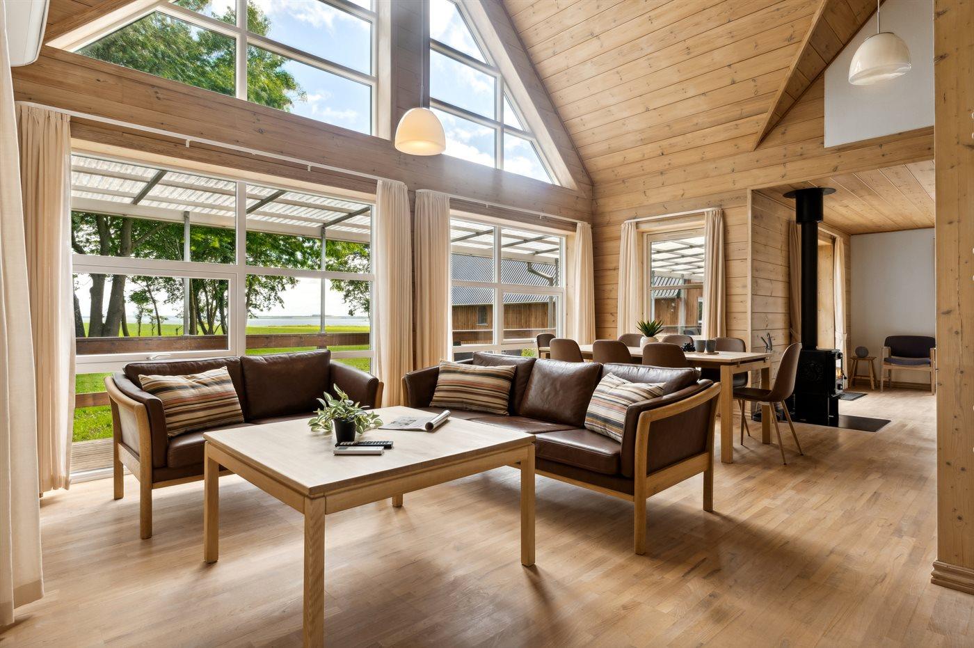 Ferieboligen er beliggende på en 4500 m² stor naturgrund. Der er 150 m til fjorden. Nærmeste forretning er beliggende i en afstand af 3000 m. Der er en golfbane i en afstand af 20000 m. Til ferieboligen hører 30 m² terrasseareal. Desuden er der 70 m² overdækket terrasse. Der er redskabsrum. Grill til rådighed. Der er installeret stik til opladning af elbil. Med 11 kW ladeeffekt. Parkering ved ferieboligen.
