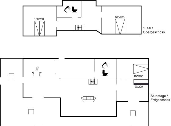 Der er i alt 4 soveværelser. Sovepladserne fordeler sig på: 6 sovepladser i dobbeltsenge. 2 sovepladser i køjeseng. Derudover er der 1 stk. barneseng. Der er gulvvarme i 4 af soveværelserne.